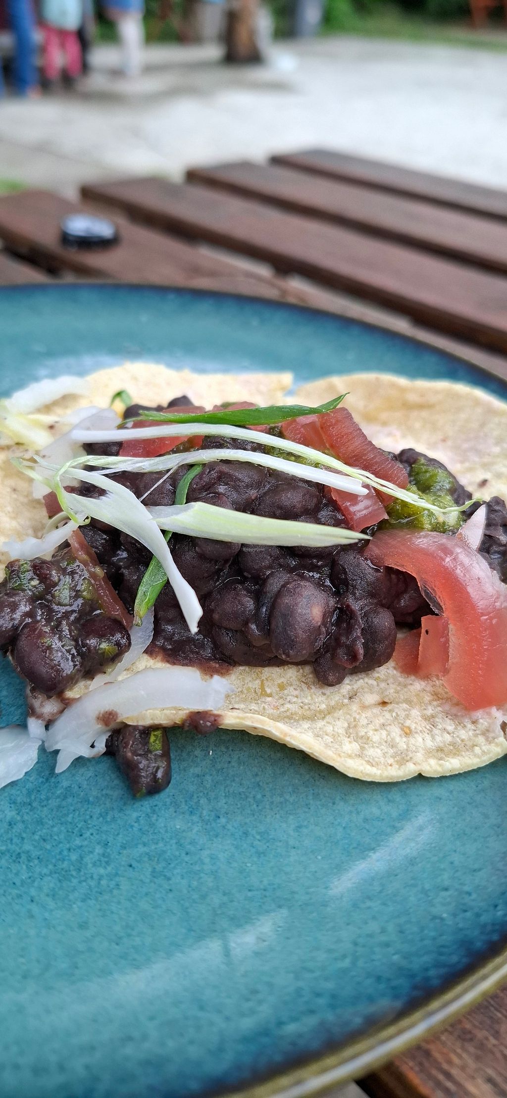 Vegan tacos in a nice urban garden Vibe kinda thing. Really good