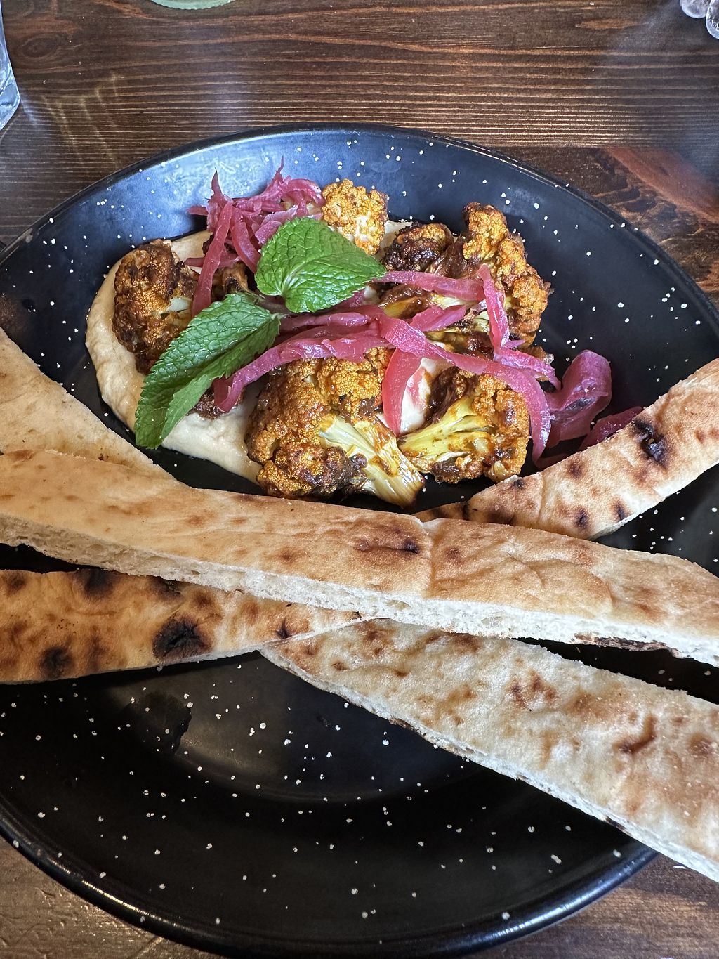 Impromptu visit today. Limited vegan options but the starter, cauliflower and hummus, and main of vegan greek salad was pleasant and I actually enjoyed the experience. The staff were super nice and there was a great fresh juice and smoothie menu, would return for that but perhaps not food.