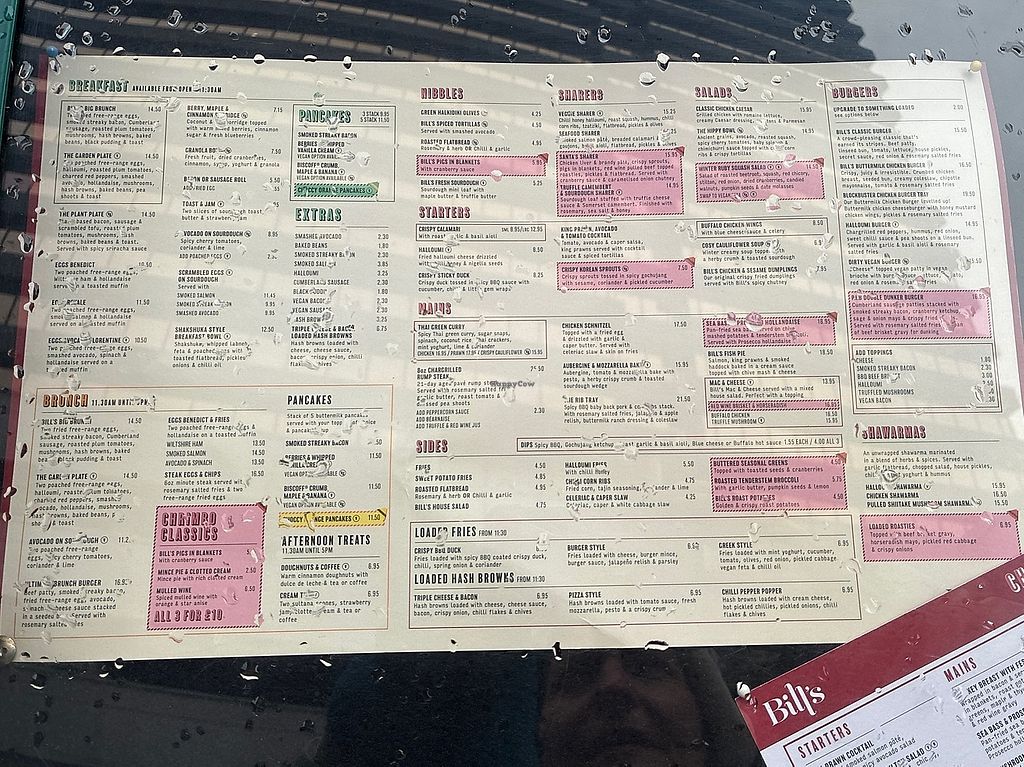 Serves meat, vegan options available. Restaurant chain offering extensive menus with vegan options marked (VE). Includes items like acai breakfast bowl, breakfast coconut porridge, toast with avocado or beans, roasted garlic & herb ciabatta, toasted focaccia with hummus & olives, butter squash lentil salad, wild mushroom soup, cauliflower steak, butternut squash with turmeric & coconut curry, and a dessert brulee. Open Mon-Wed 08:00-22:00, Thu-Sat 08:00-23:00, Sun 09:00-22:00.