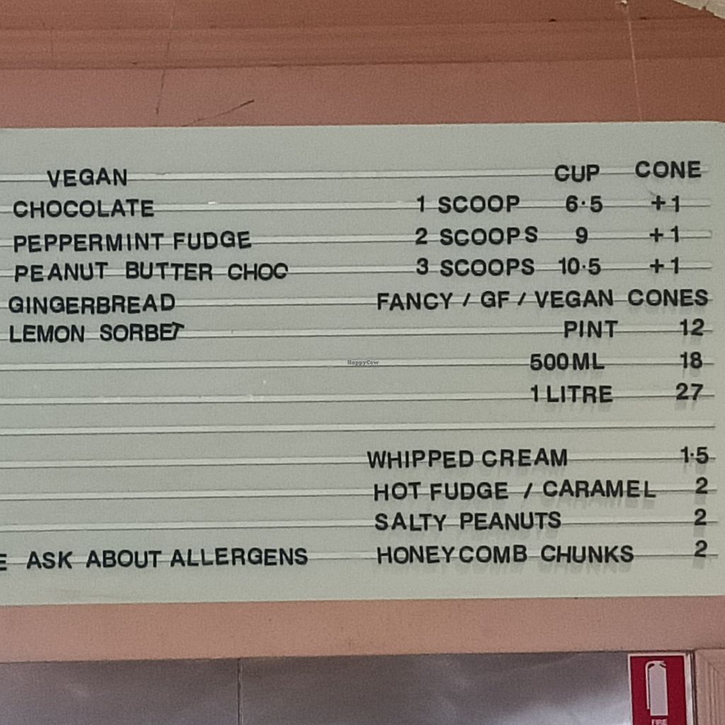 I had the peppermint fudge and peanut butter choc flavours in a cone, absolutely amazing! My non vegan boyfriend even said "are you sure that's vegan?" 😂 Very creamy. Friendly staff member and I thought the pricing was good too.