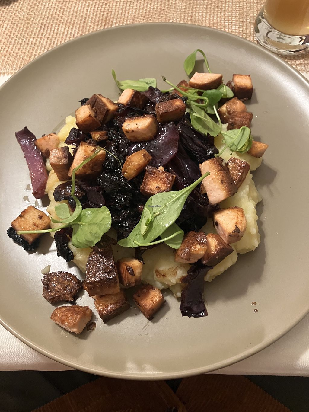 Drei Gänge Menü Teil 2 Gebratener Tofu auf Rotkohl/ Kartoffelbrei