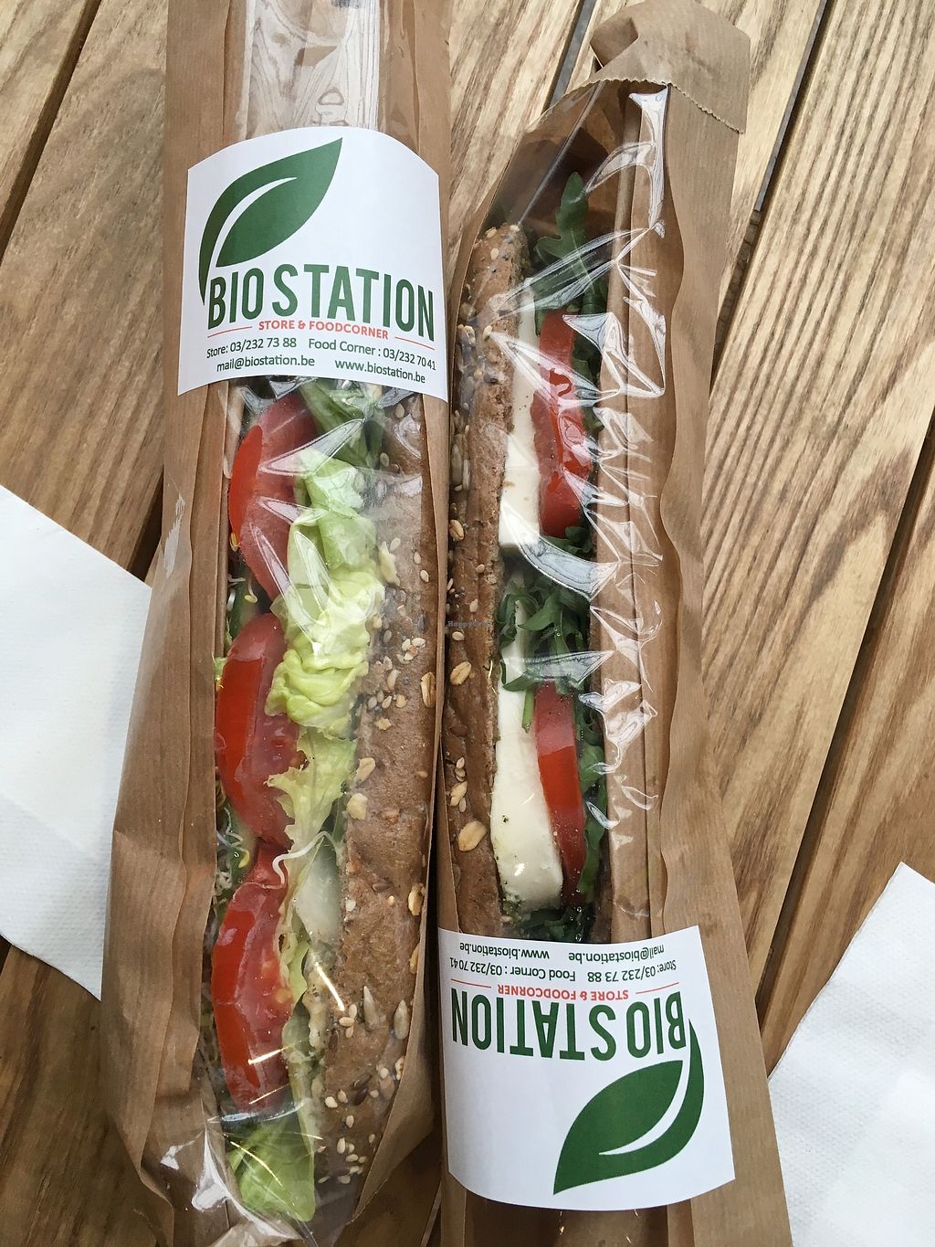 Very easy to find place in Antwerp (since it's in the main train station :) ). It is a small organic convenience store where they offer quite some vegan products, even vegan cheese (Wilmersburger). With this cheese they can make a great sandwich (or baguette) for you as well. Completed with veganaise so 100% vegan :)