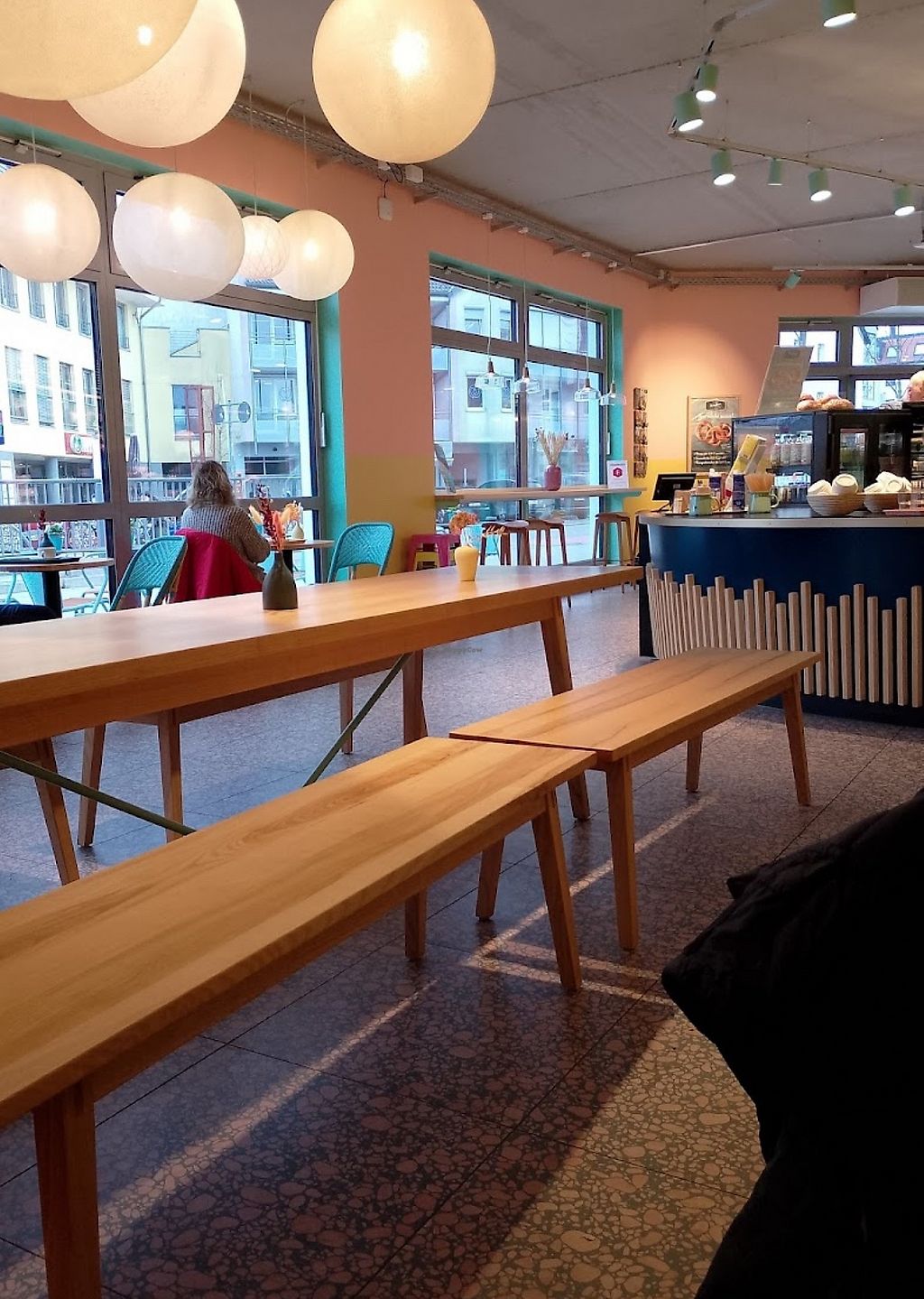 Ganz klar gelabelte Vegane Backwaren, Süßes wie Kuchen und Snacks. Ganz große Empfehlung! Sieht auch sehr gemütlich und schön Innen aus👏