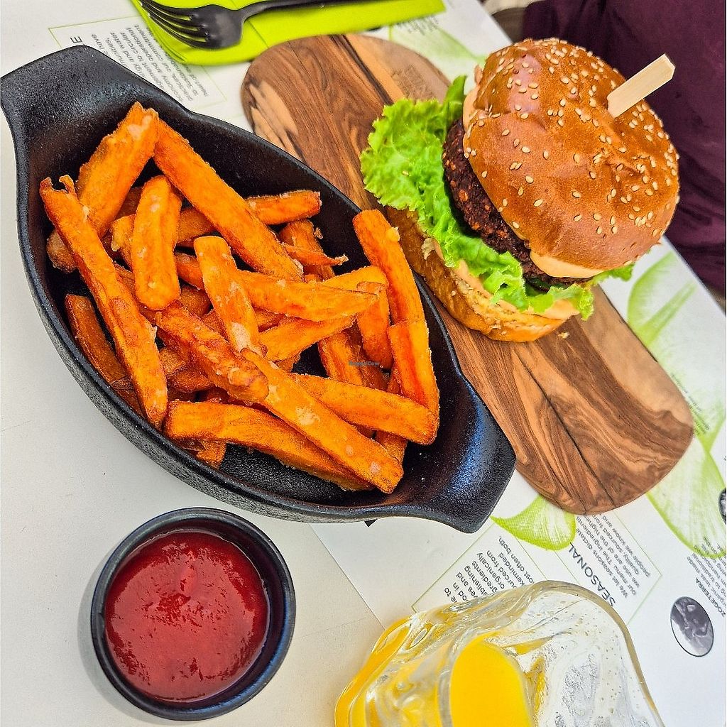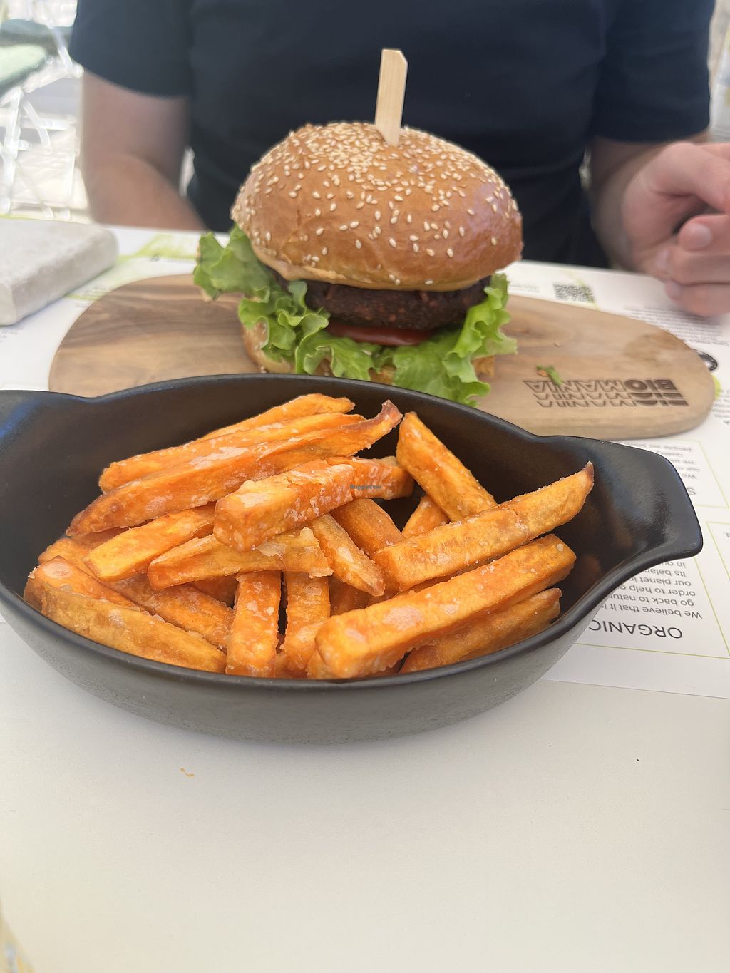 Biomania Burger mit Süßkartoffel Pommes