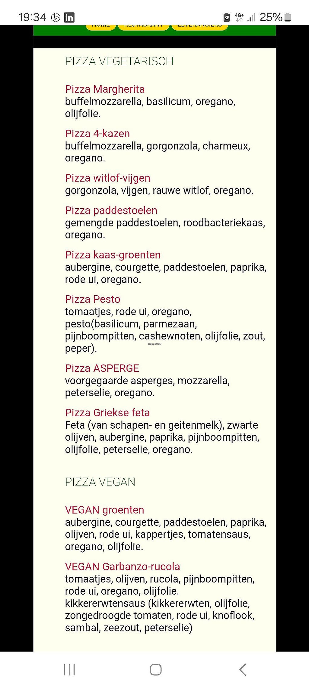 Er zijn 2 vegan pizza opties en wat vegan salades en soepen.