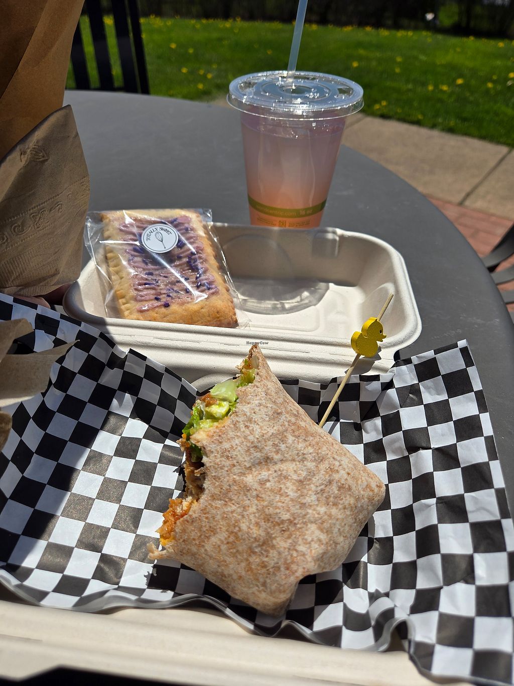 2 of kids and I had a great lunch today. Kids meal in a bag for my 7 year old. Porky’s Revenge wrap for the 13 year old. I got the Dragon Club and avocado toast. “Bitchy Vegan [censored]” cookie, pumpkin pie and rainbow sprinkle cupcake for dessert. Everything was delicious!