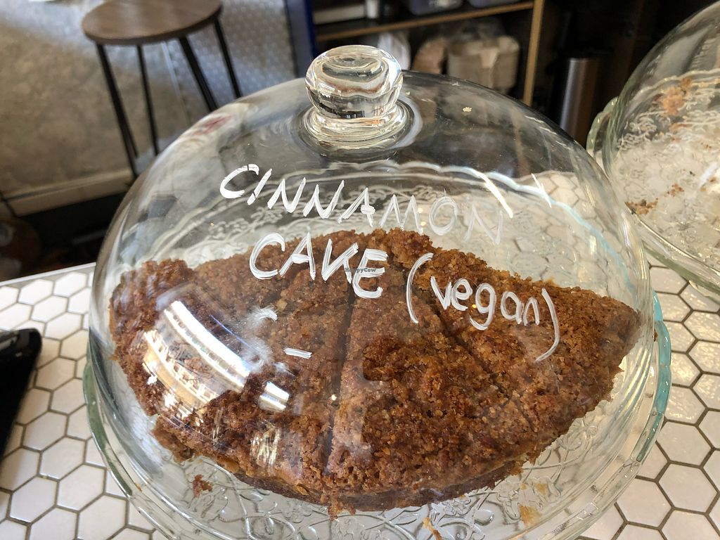 The “birdie brekkie” is vegan & a hearty choice for powering up in the morning- avocado, hummus, greens & veggies on toast. They also offer 2 vegan desserts - the cinnamon coffee cake was delicious & the perfect accompaniment to their strong cafe Americano.