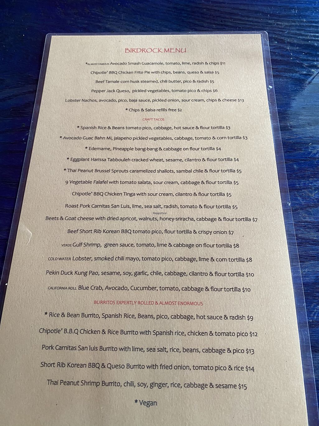 Serves meat, vegan options available. Southern California style Mexican eatery in the Village of the Arts. Can ask for vegan taco or burrito. Reported closed November 2023.
