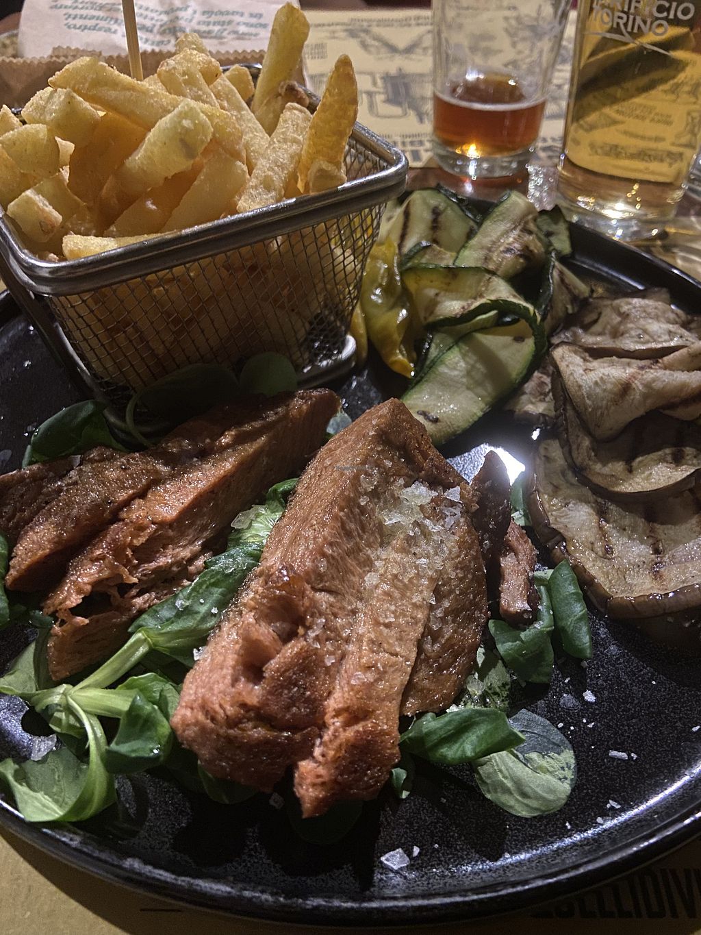 Vegan burger and homemade fries