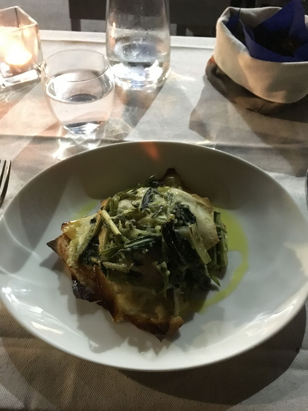 Lovely proper white tablecloth restaurant, great service and delicious creative food. Not cheap! We had a yummy chickpea omelette (more like frittata) and mushroom tagliatelle. Everything was covered in fresh truffle shavings!