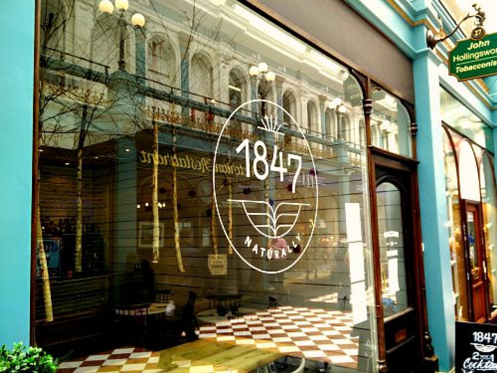 Its 3rd location, opened Sept 2013. Modern vegetarian British food served with wide range of beers, wines and cocktails. In 2015 it dropped the "Bistro" from its name, now just 1847. Open Mon-Thu 12:00pm-10:00pm, Fri-Sat 12:00pm-10:30pm.
