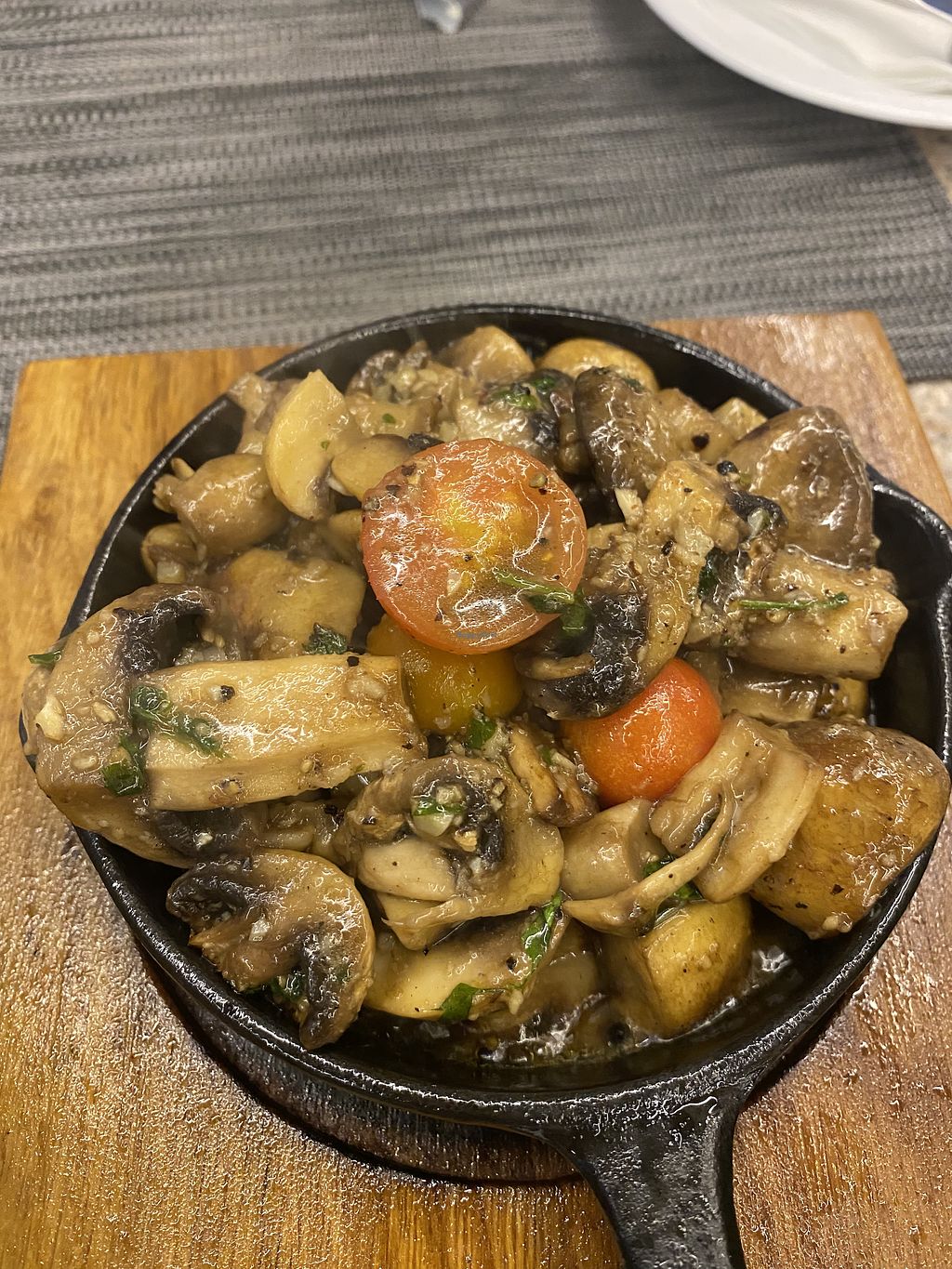 Had a starter and it was more than enough considering I wasn't overly hungry. Nice atmosphere, service was acceptable. Ordered vegan garlic mushrooms and mum ordered garlic mussels, both were delicious
