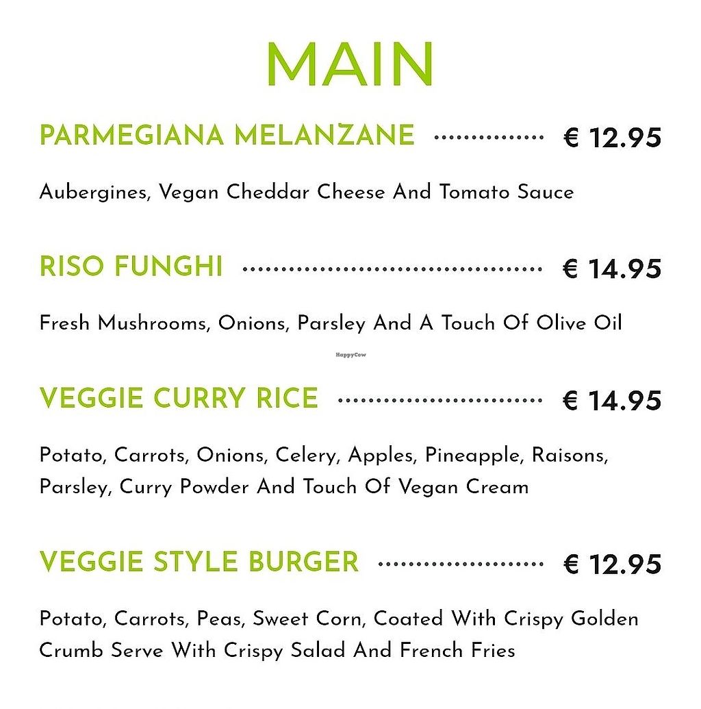 Serves meat, vegan options available. Restaurant offering a separate vegan menu with items such as focaccia, mushrooms in garlic, curry, pastas, burger, and more. Open Mon-Sun 09:00-23:00.