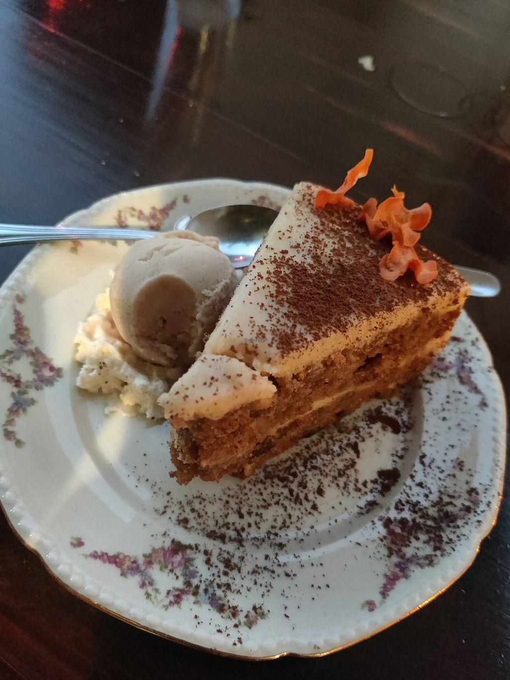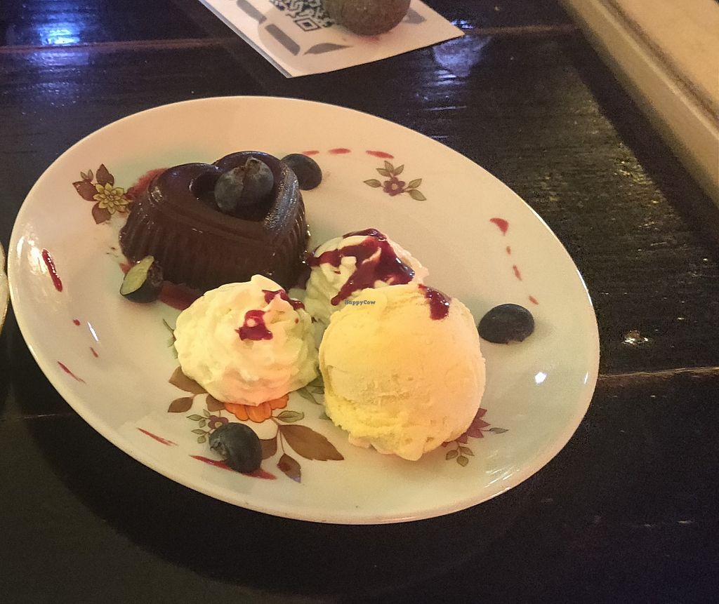 This was a really tasty brownie with maracuja ice cream !