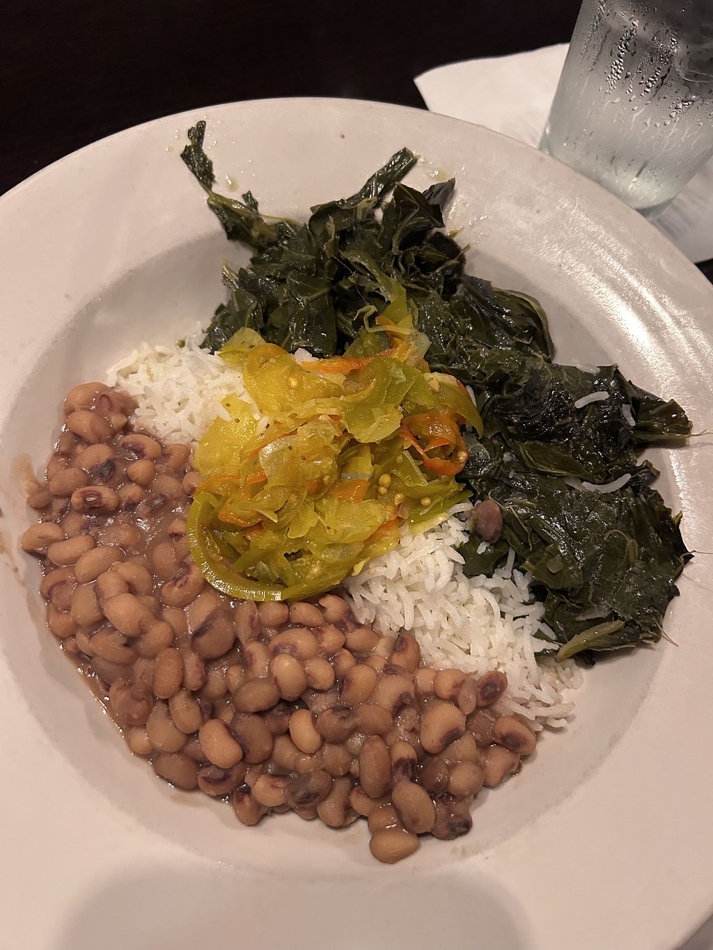 I had a bowl with basmati, collard greens, black eyed peas and chow chow (peppers in vinegar) and it was very wholesome and satisfying.
