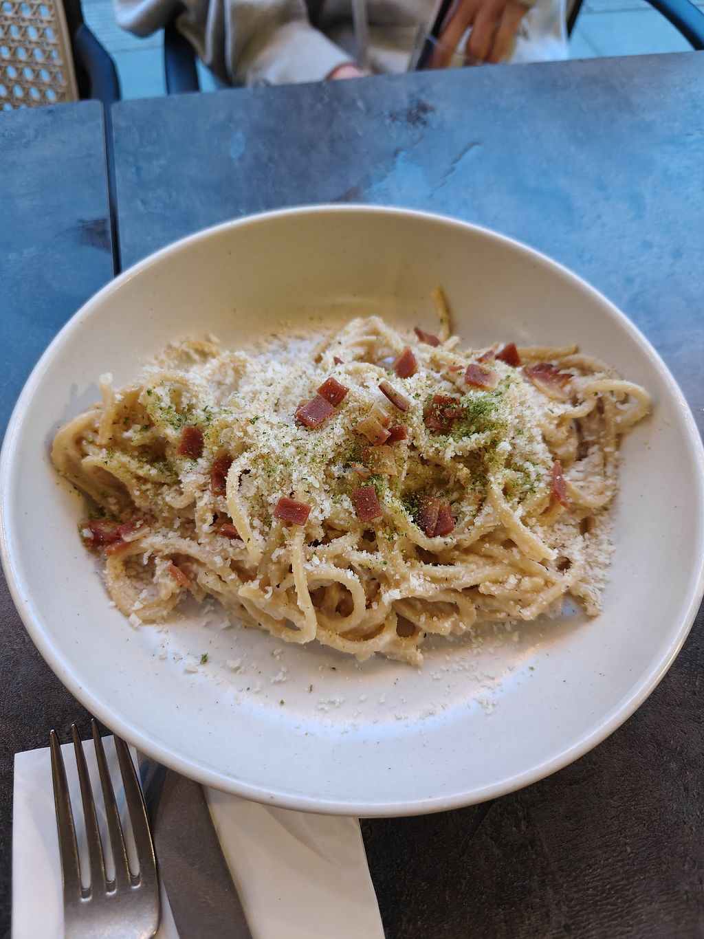 had a wonderful meal here, they very graciously managed to find us a table even though we didn't have a reservation. we had some homemade lemonade, a courgette starter with sourdough, the enochi mushroom burger and the carbonara. all very delicious and great service too! come here!