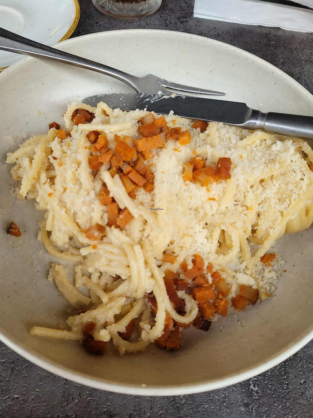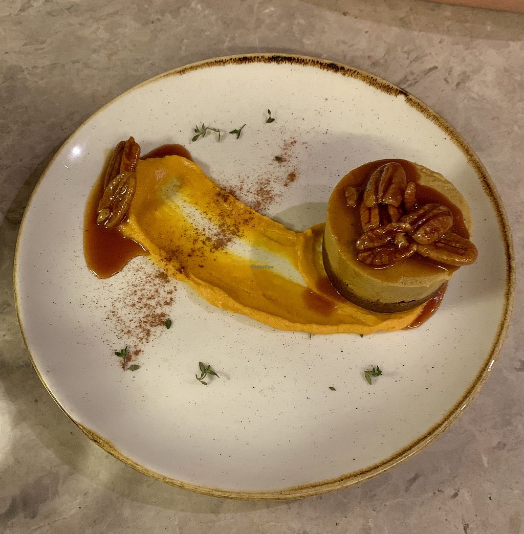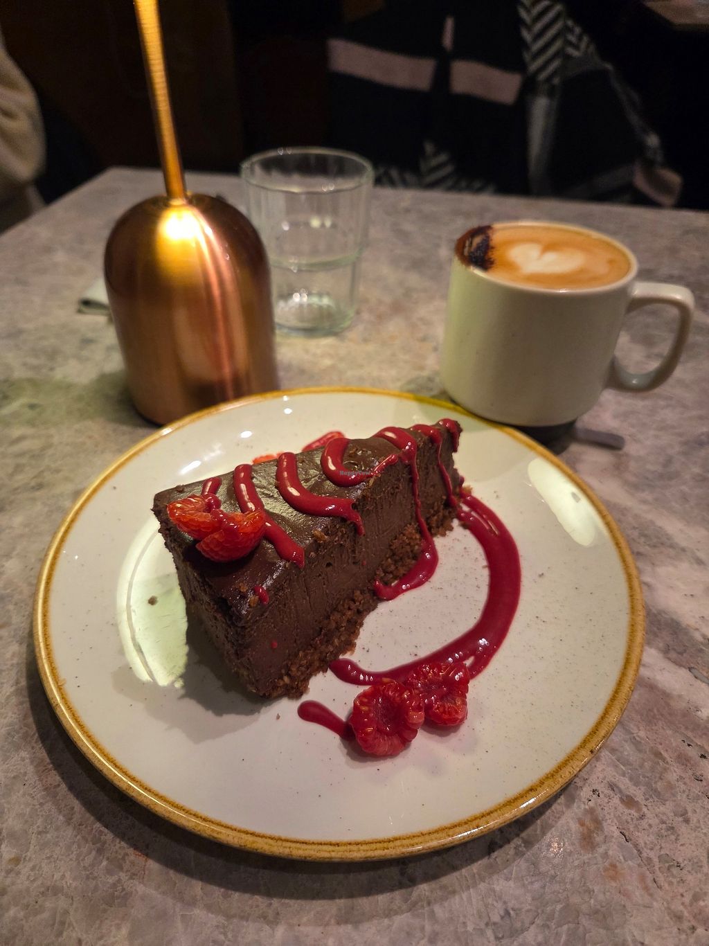 We came here once during the day for a mid-day treat (pumpkin pecan pie and smørrebrød). That was very delicious! Then we came back another day in the evening for dinner and had the pumpkin soup, carbonara pasta and mushroom/mashed potato stew. The carbonara was a bit bland and lacked flavour unfortunately. For dessert we shared a pistachio tiramisu which was good but also not wowing us. All in all very good place to eat, but there are better vegan restaurants here.