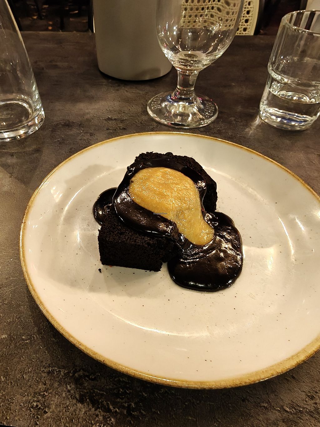 Knowing you’re going to a 100% vegan restaurant immediate puts you at ease. Mid-afternoon or a Saturday and I got a nice table in comfortable cosy surroundings. Of course the other advantage is there’s lots of options. I fancied juicy marbles steak but I have that at home a lot some opted for the mushroom bourguignon with a crispy cauliflower starter. Both plates were delicious and ample sized portions.