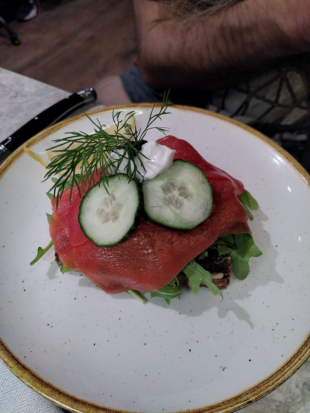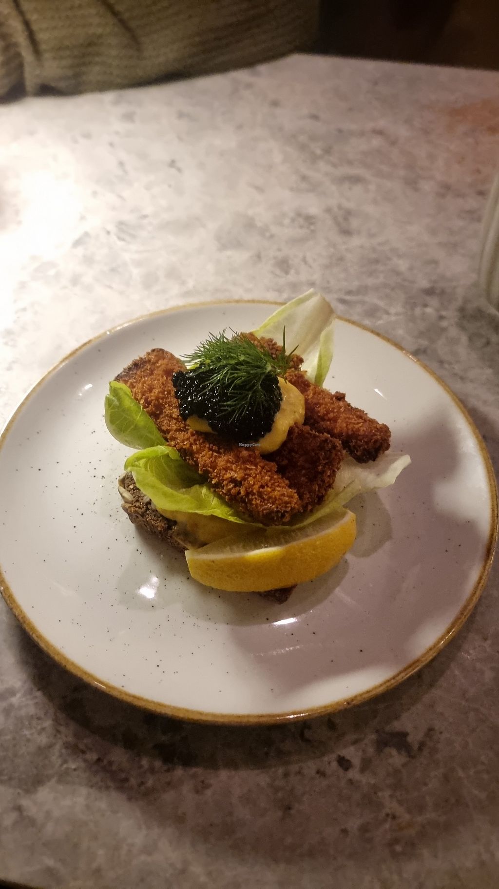 If it wasn't labeled completely vegan I would have doubted it. It's so delicious. Had the smørrebrød with vegan salmon and caviar, the chocolate mousse cake as desert. Absolutely fantastic.