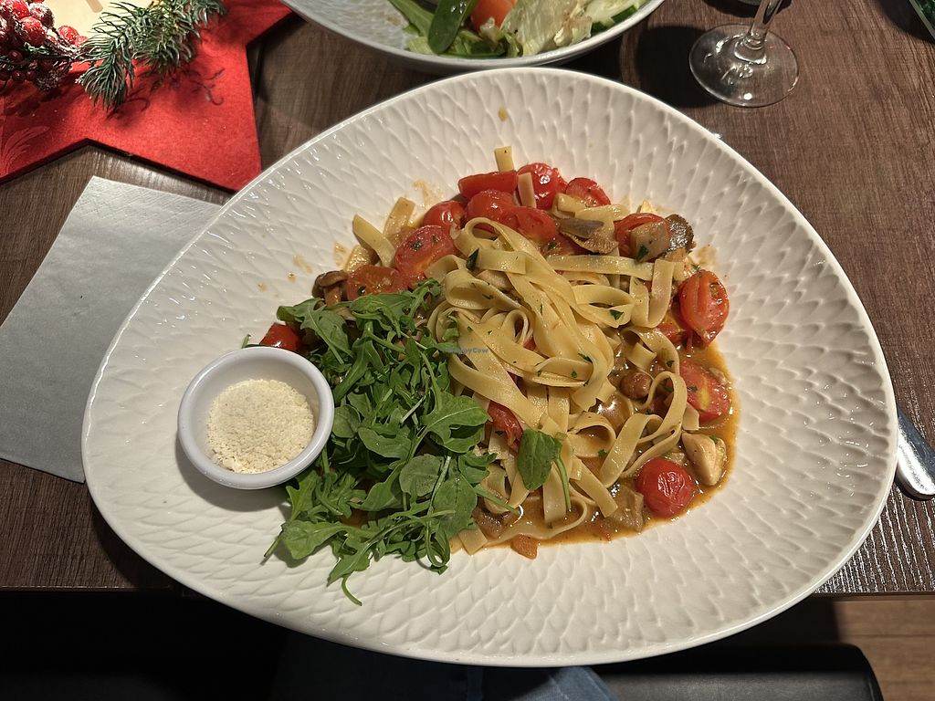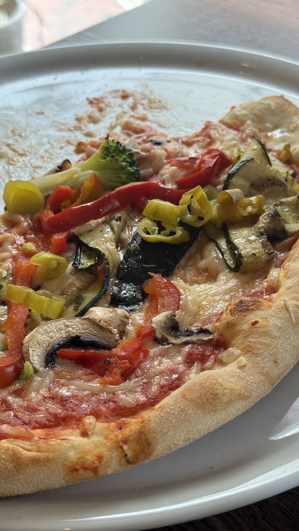 Die Pizza ist aus Dinkelmehl und vegan. Auf JEDEN Sonderwunsch kann eingegangen werden. Pizza und auch Nudeln ( manche auch glutenfrei möglich) sind sehr lecker, genauso wie die anderen vegetarisch/ veganen Gerichte.