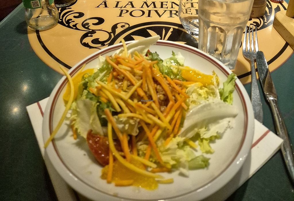 Serves meat, vegan options available. French table service restaurant. Offers a two or three course meal. Vegan items include spelt & mushroom salad and a vegetable stew with vegan meat balls. Open Mon-Sun 11:30-19:30.