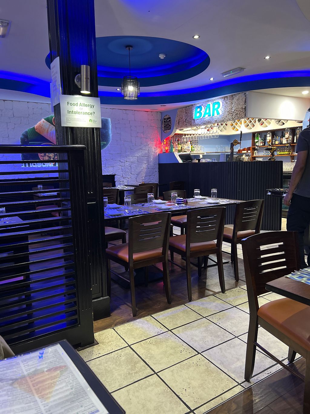 Someone else recommended here but from the street it looked more like a takeaway and possibly lacking in atmosphere. It wasn’t like this inside. It felt like a proper restaurant. Staff were welcoming. The food was obviously cooked to order and spice levels options were given. I had a plain dosa. Partially because of other reviews and the description that it was healthy with rice and lentils.. I wasn’t expecting an empty ‘pancake’. Presumably it was made from rice and lentils. The sauce was watery and spicy and I wasn’t sure how to eat it. The dosa was a little greasy for my liking. I managed to eat it all and it was tasty. The dips were a bit different too, there was a peanut one and coconut one which was nice. It was pretty hot for me on a hot day and I’d ordered mild. I took some of his beer. Overall it was an experience as I haven’t had dosa before. He had a chickpea curry which seemed more of a proper main course and it was a huge portion of chickpeas. I watched a family eating a dosa after we had finished. It looked ideal as a communal dish. Maybe alongside another dish or as a starter. I would definitely try here again. There are quite a few items marked as vegan. Price was reasonable and popadoms and dips were served on arrival which were all naturally vegan which was a bonus, no yoghurt dip to send back. Serves beer.