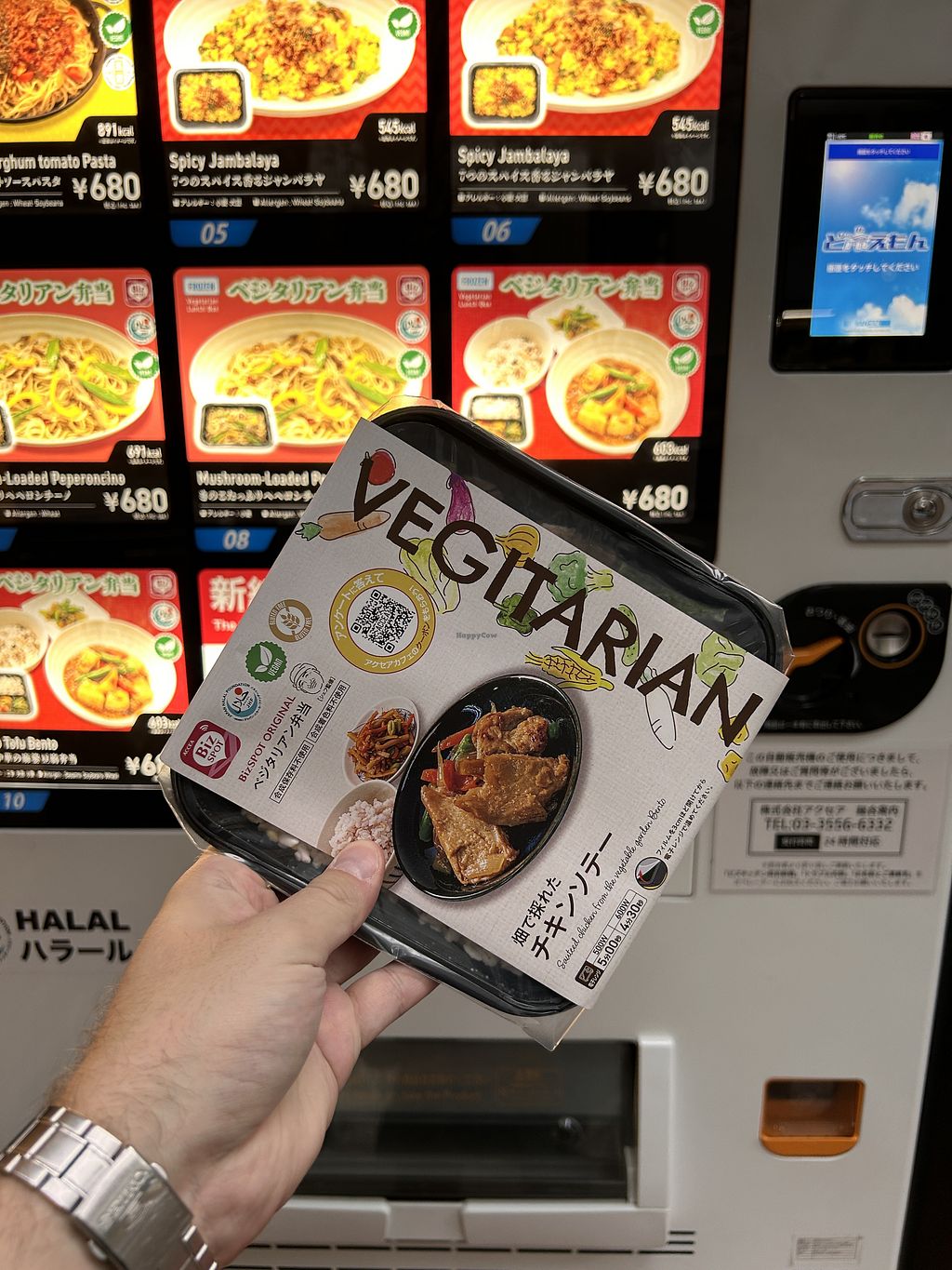 This vending machine sells a few frozen meals that you need to microwave at home or at your hotel. It might not be readable on the pictures on HappyCow but they were all clearly marked as vegan when I was there. I liked the spaghetti-ish dish; also tried the mapo tofu but that one was a bit meh.