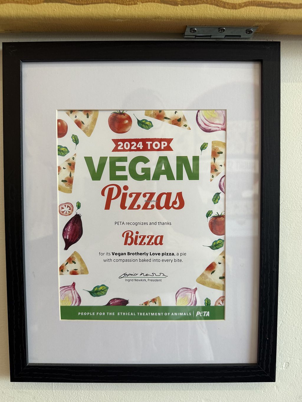 This review is long overdue. My family and I love Bizza! This is the spot to get pizza. They have great vegan options for pizzas and sandwiches. Our favorite pizzas by far are: vegan planet earth, vegan meatza, and vegan pineapple express. You can customize your pizza and do half and half. We also love their subs, especially the vegan “chicken bacon” ranch and philly cheese “steak”. We usually order the jumbo size pizzas, which will last us until the next day to enjoy. Their vegan mozzarella sticks are also amazing! Overall, I highly recommend Bizza. It is pricey, but definitely worth the quality and taste.
