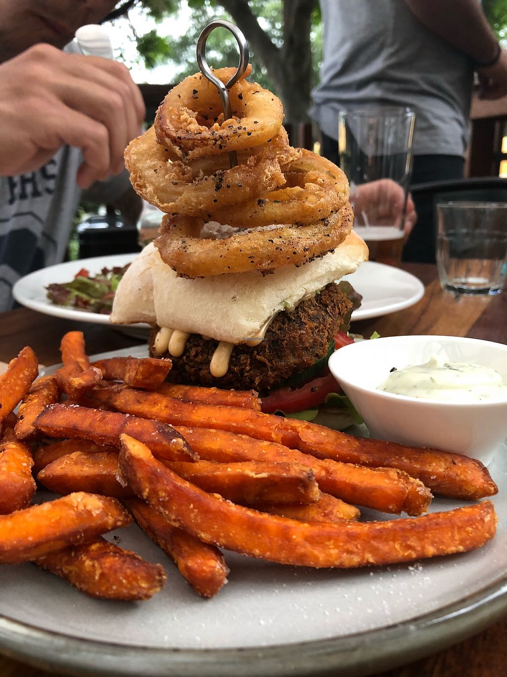 I had the black bean burger which was delicious, well put together and not dry as so many vegan burgers are. good chips and aioli as well. my partner had the nasi indonesian dish (i forget the full name) which was just amazing, although too much food for her! good service and nice place, definitely recommend 👍