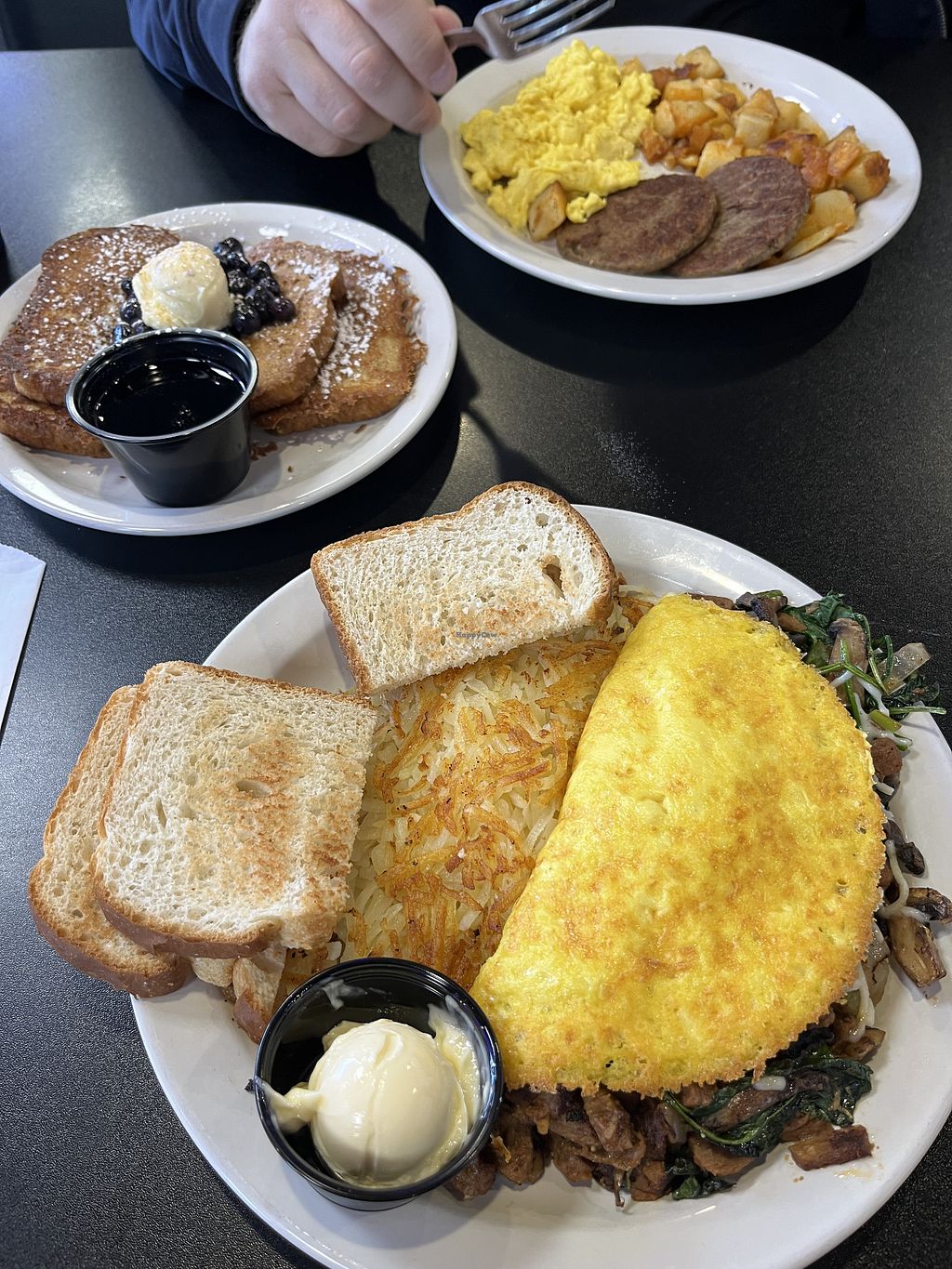 I felt this diner really excelled in size of menu options for vegans and was a great place to eat with non-vegan family. We were there for breakfast food and enjoyed our food, but I did think it’s worth noting for anyone seeking like.. “house made” things that our meals were largely based around things we usually have at home like JustEgg or Gardein Chick’n. Knowing that now, I’d likely order slightly differently or go with lunch options! But I am still extremely pleased with the service, variety of options, & the food was good! Our favorites were the waffle & French toast which is always nice to have made vegan!