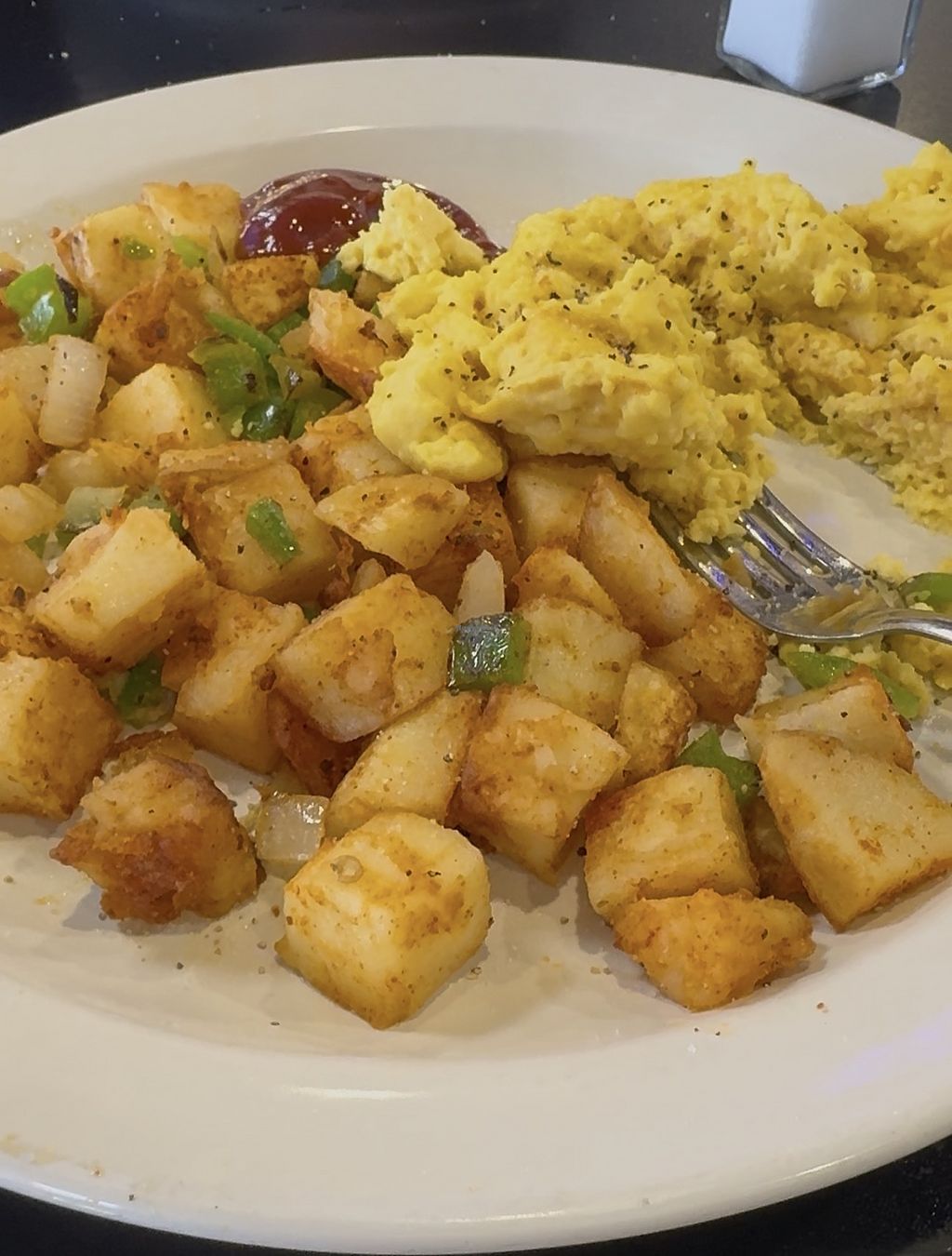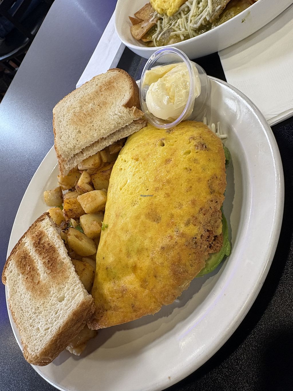 The vegan omelet and dinner potatoes were delicious and very flavorful. Large vegan section on the menu. #Veganuary