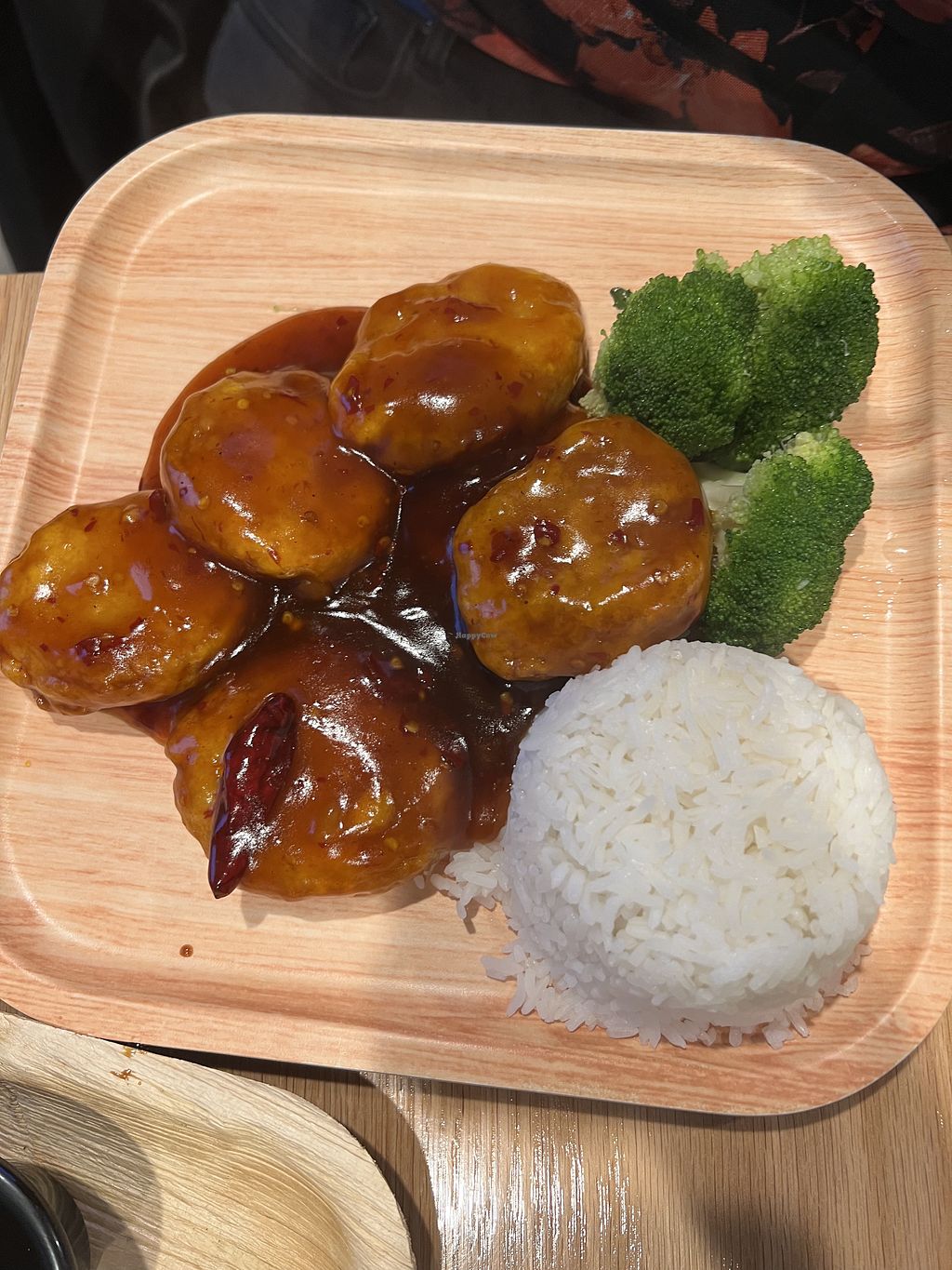 Read moreI had the vegan chicken with broccoli. It came with white rice.