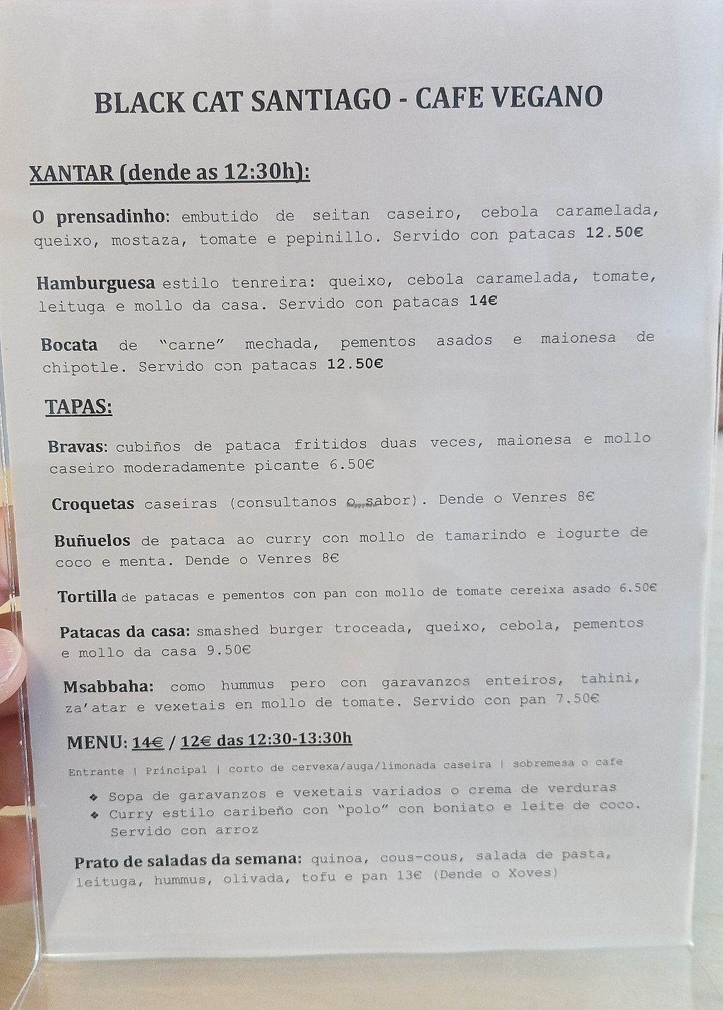 Anyone walking the Camino Frances or Portuguese the Camino goes right past the black cat , closed Monday and Tuesday breakfast menu then from 12.30 lunch and tapas