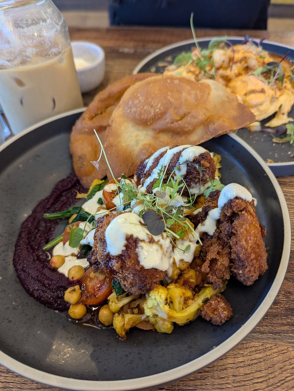 I love the atmosphere in the restaurant, it's always so lively. The food is great, all vegan and vegetarian options are labeled. Allergy friendly place too! I must say that it can be a bit overpriced though.