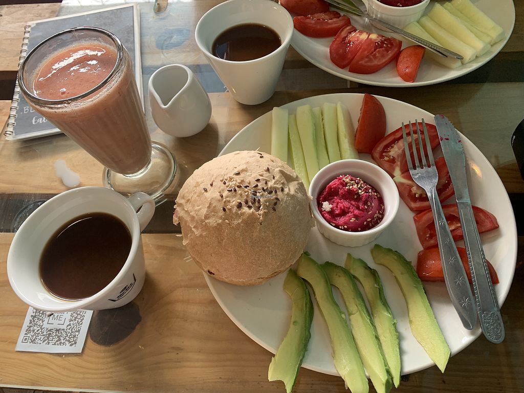 Vegan breakfast for me and English breakfast for my boyfriend