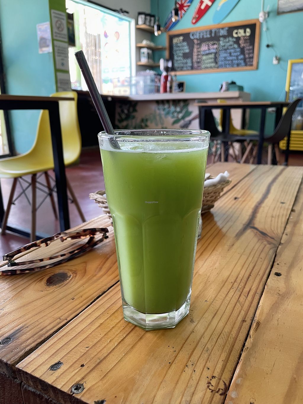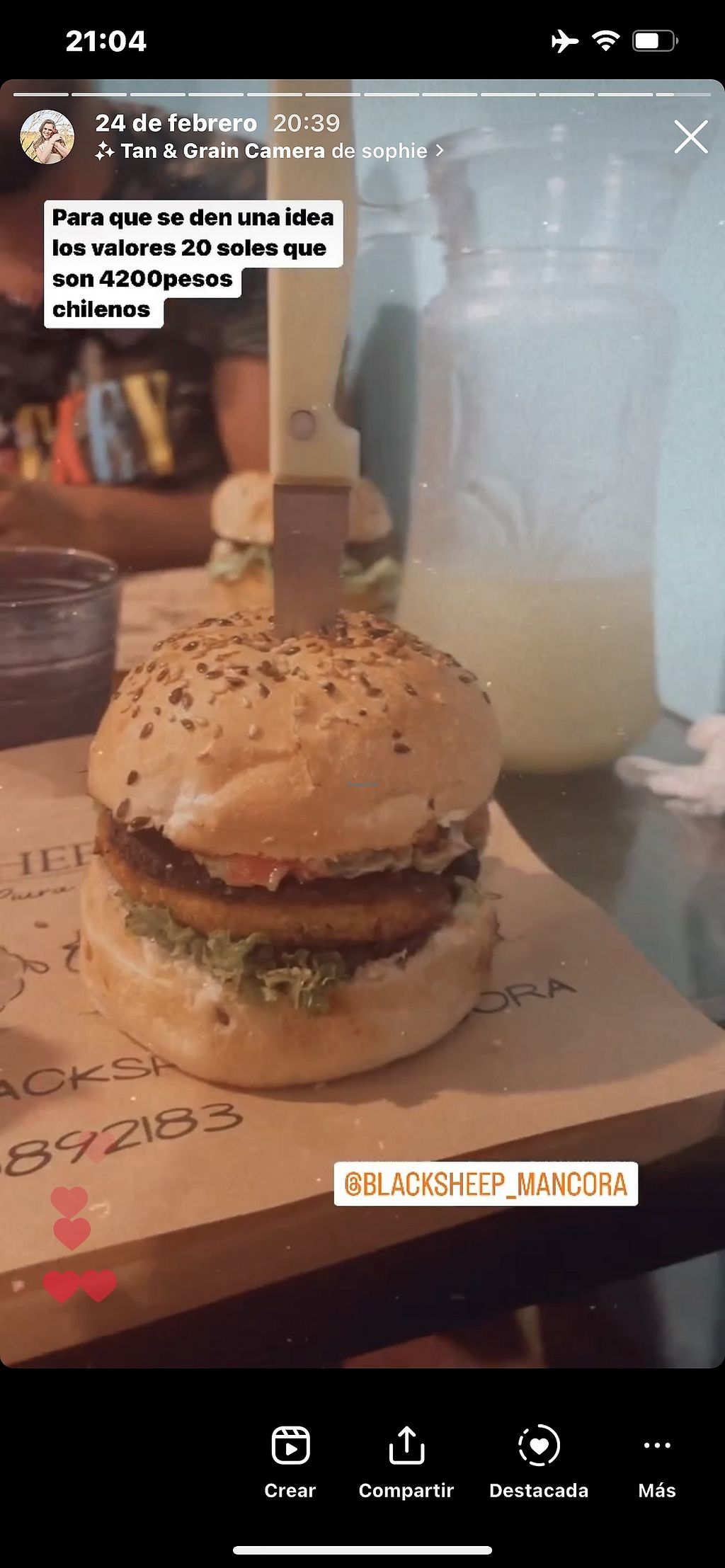Garbanzo burger and mixed fruit drink