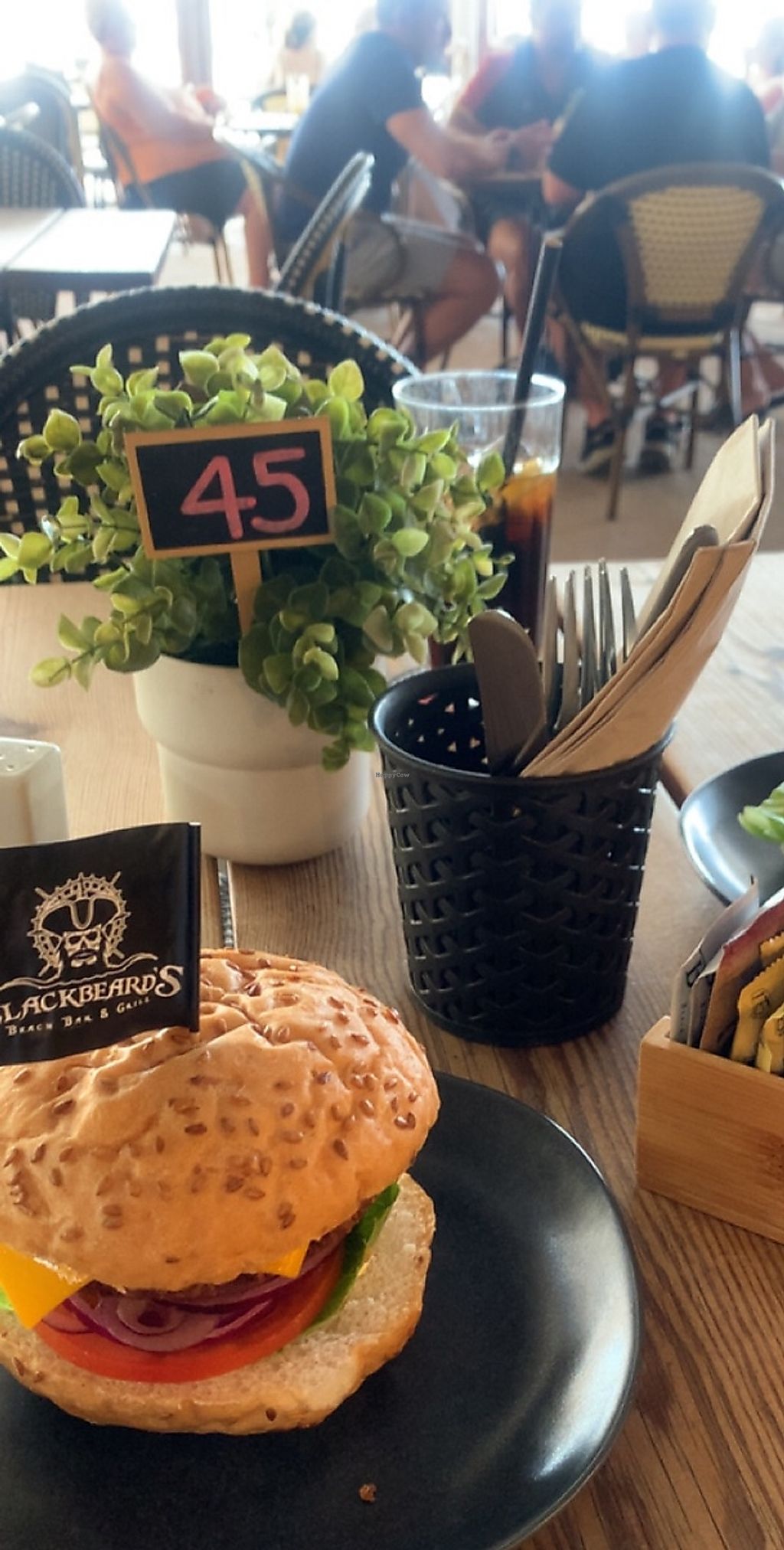 Serves meat, vegan options available. Beach bar and restaurant with vegan choices. Menu includes Beyond burger and spiced vegetable black bean burger both with optional vegan cheese, Mediterranean salad and more. Also offers side sala and french fries.. Online menu displays all vegan-optional dishes available. Specify vegan when ordering. Open Mon-Sun 12:00-23:00.