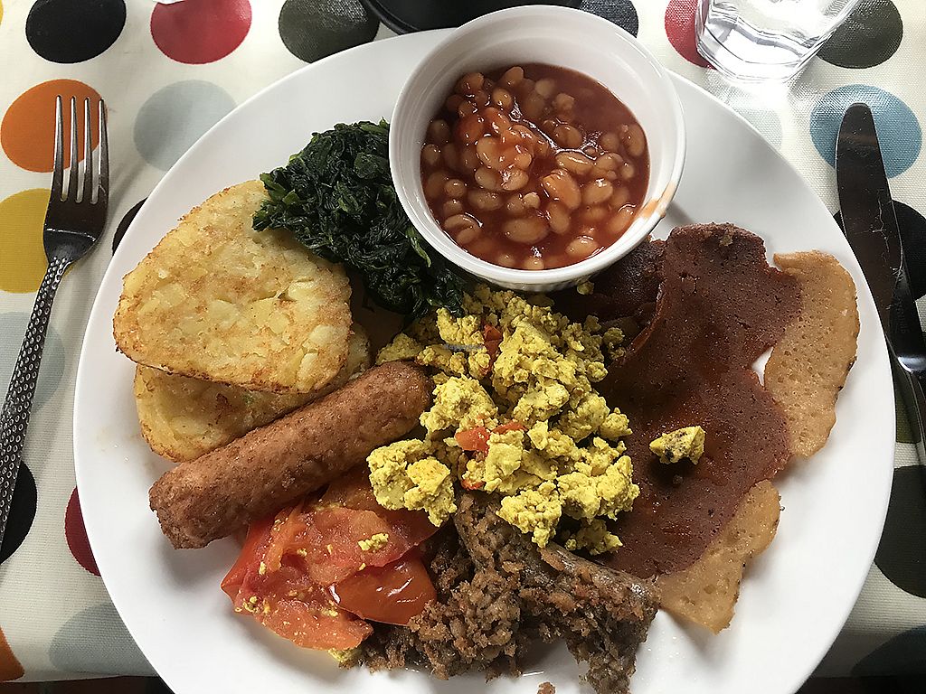 Veganized traditional irish breakfast - while sitting outside in the s…