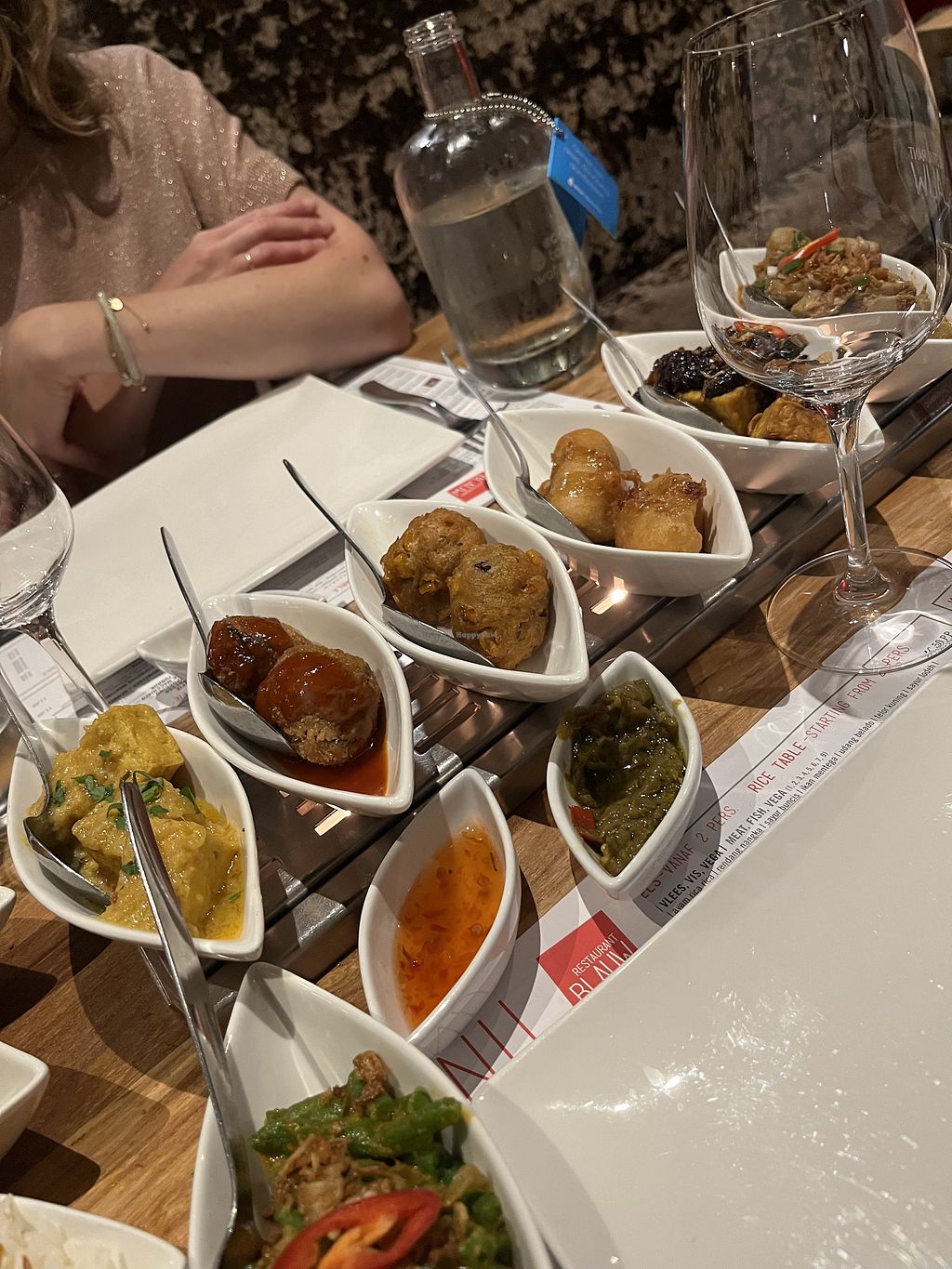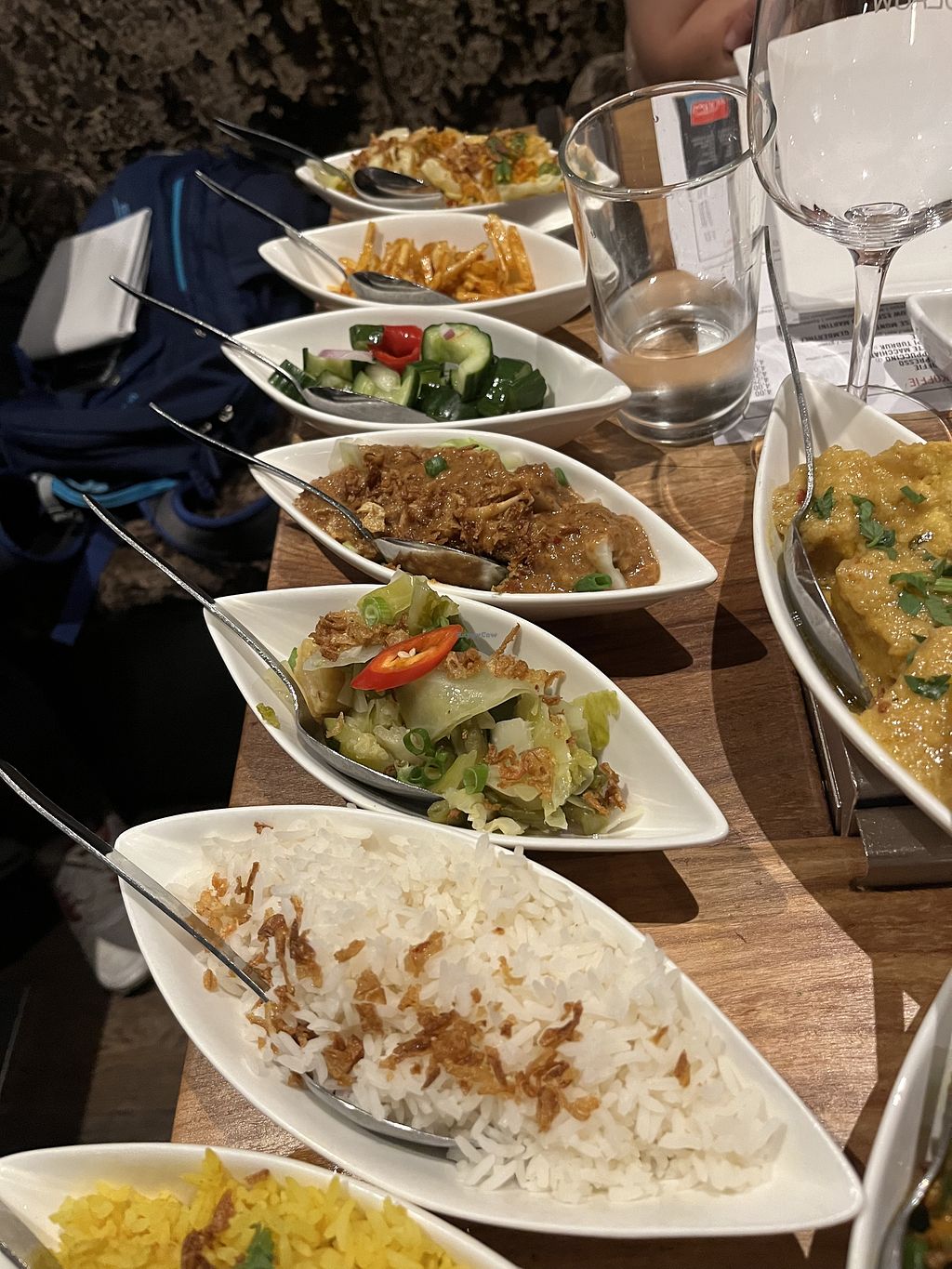 …white rice, sayur lodeh, gado gado (without egg obviously), atjar, su…