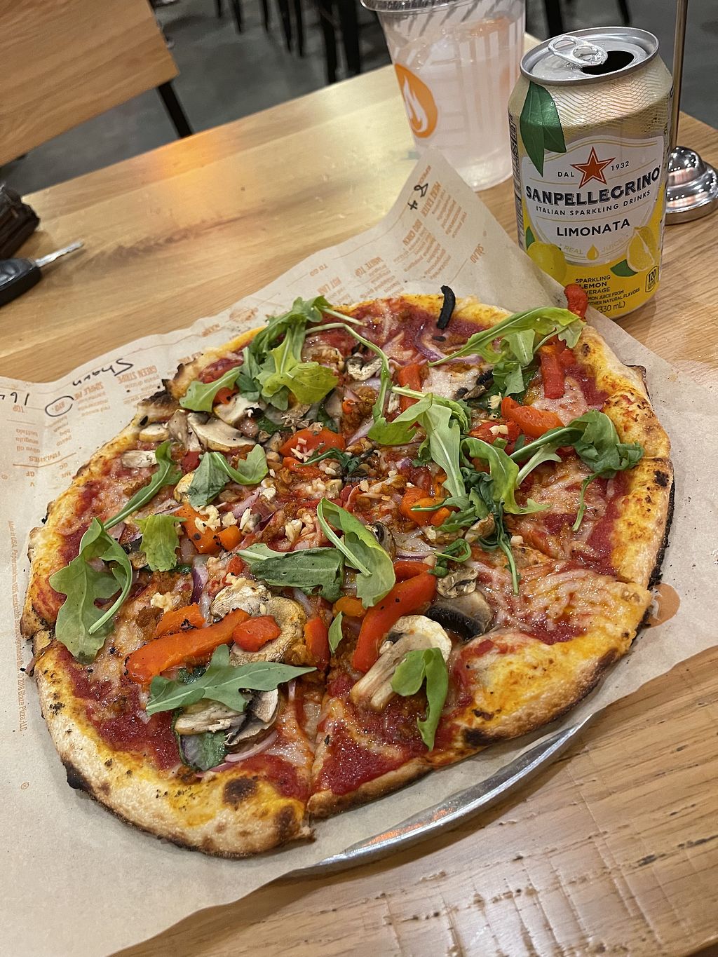 Customisable pizzas and garlic bread all made vegan. Vegan chorizo also. Didn’t really taste the chorizo and the garlic bread wasn’t great