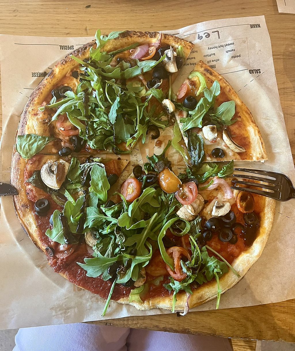 Really delicious pizza! I love that they offer unlimited toppings, which makes it easy to load up on fresh veggies. They also have vegan cheese, which is a big plus for plant-based eaters. The staff was super friendly and helpful, and the prices are very reasonable for the quality and portion size. Definitely a great spot for a quick, customizable meal!