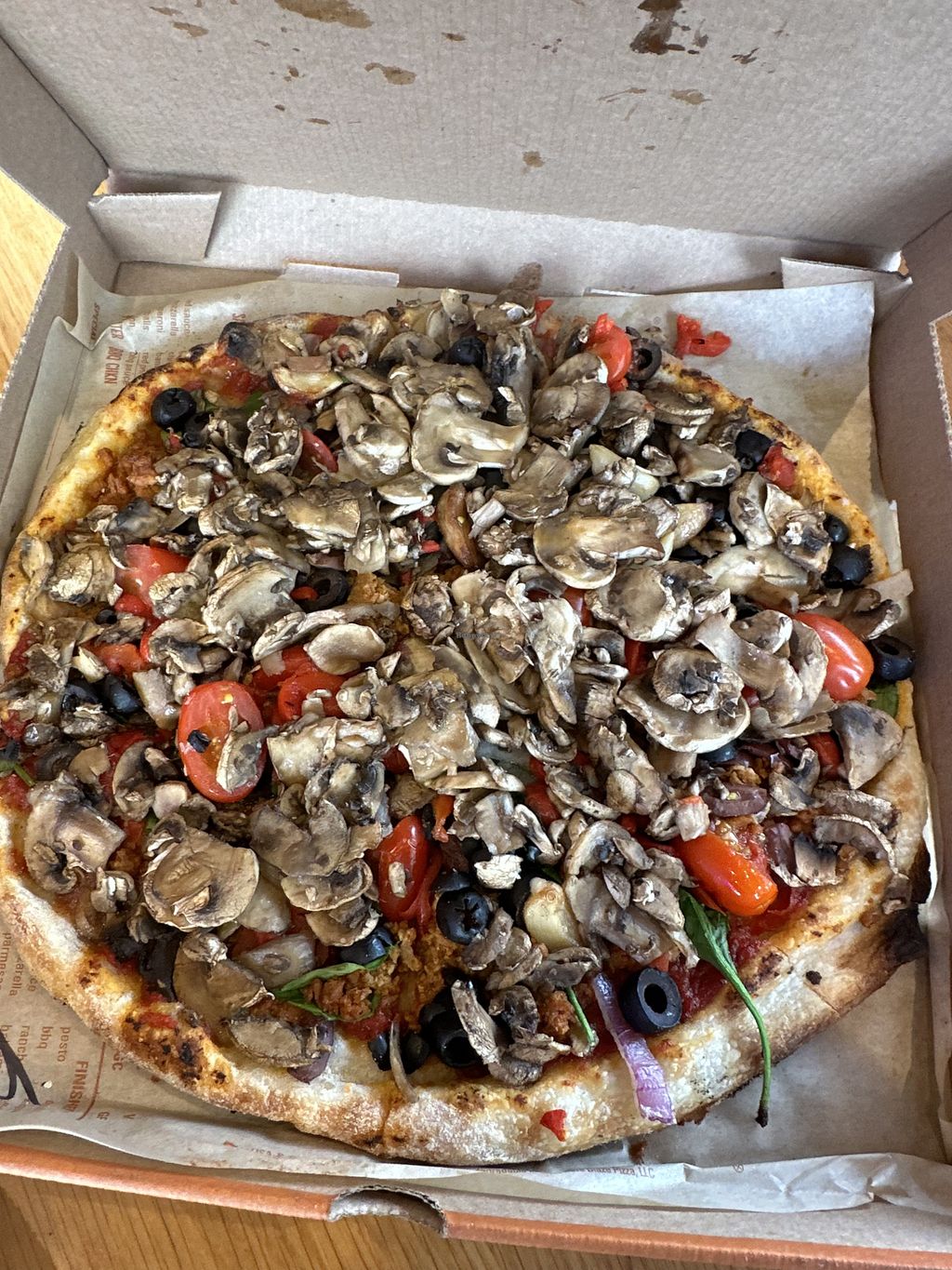 Whenever I want pizza, I order blaze. Thin crust and thick crusts are both vegan. Vegan cheese. Vegan spicy chorizo and as many veggie toppings as your heart desires! They don’t charge per veggie like some places do. The only problem with this place is that it is like chipotle or subway in that all the toppings are arranged next to each other and the employees use gloved hands to place the toppings on the pizzas so cross contamination is really possible and likely unavoidable. Ask your pizza assembler to put on new gloves before they get your pizza going.