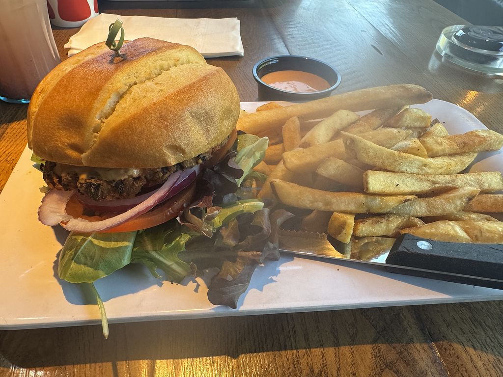 Read morePros: Black bean patty, Vegan siracha aioli , Nice location