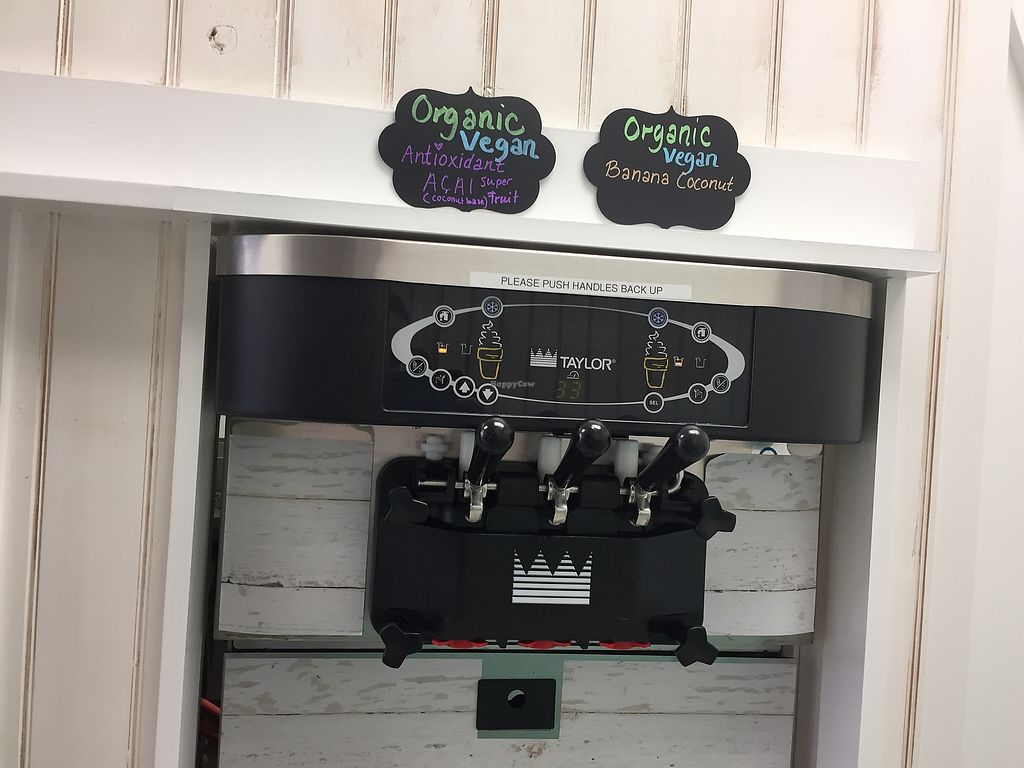 Serves meat, vegan options available. Offers a vegan panini or wrap with tofu, avocado, nut cheese, peppers, spinach, onion and pesto; 2 rotating flavors of vegan frozen yogurt; vegan dessert like chocolate Nutella balls; smoothies with vegan protein powder; and create your own salad bar. Reported closed, Jul 2019.