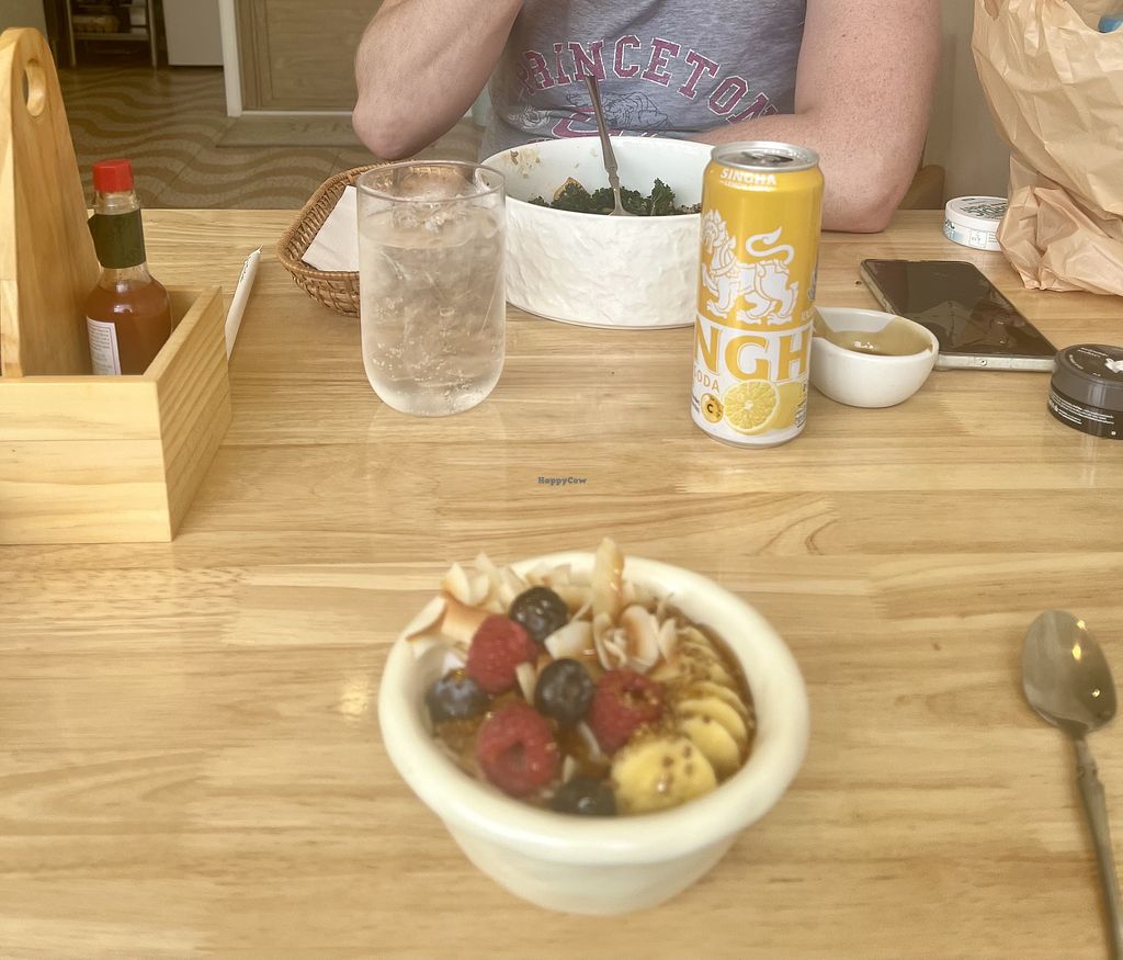 Loads of vegan/plant based options. I went with a soy latte & homemade coconut Greek yoghurt, with loads of topping options. Best vegan yoghurt I’ve had. My partner had a smoothie.