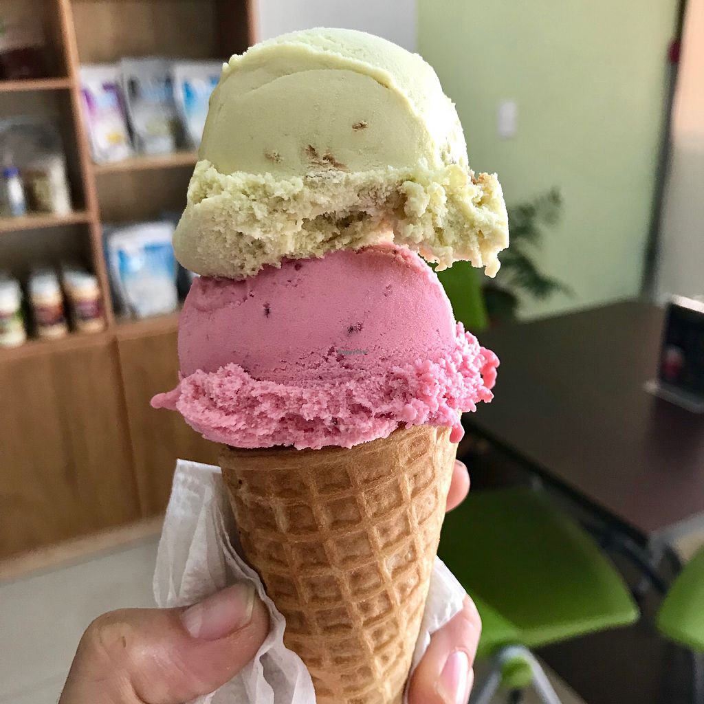 Double scoop of soy ice cream! Vanilla & oreo cookie