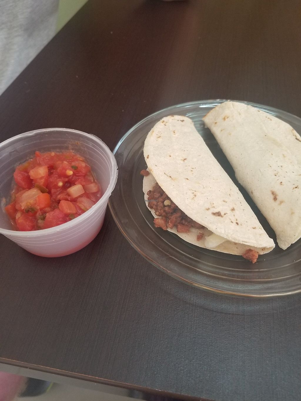 Fresh salsa, soy chorizo quesadilla, mushroom quesadilla