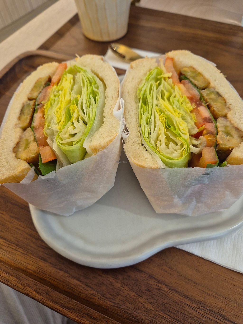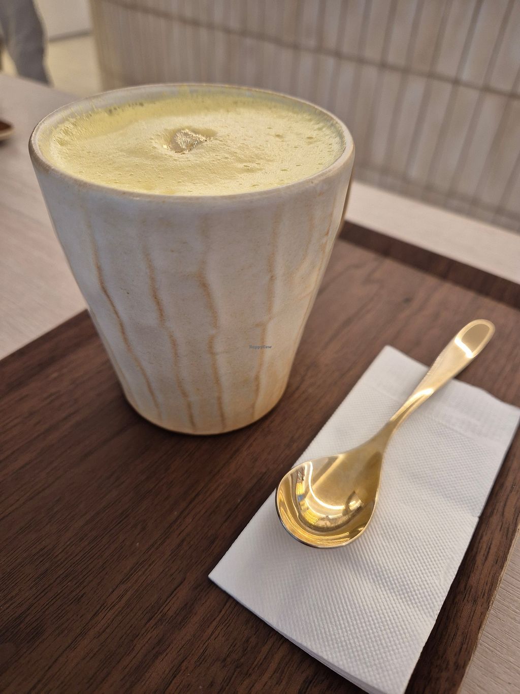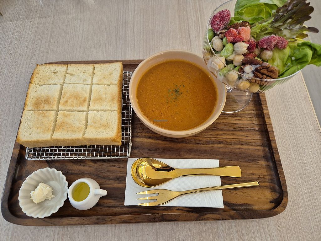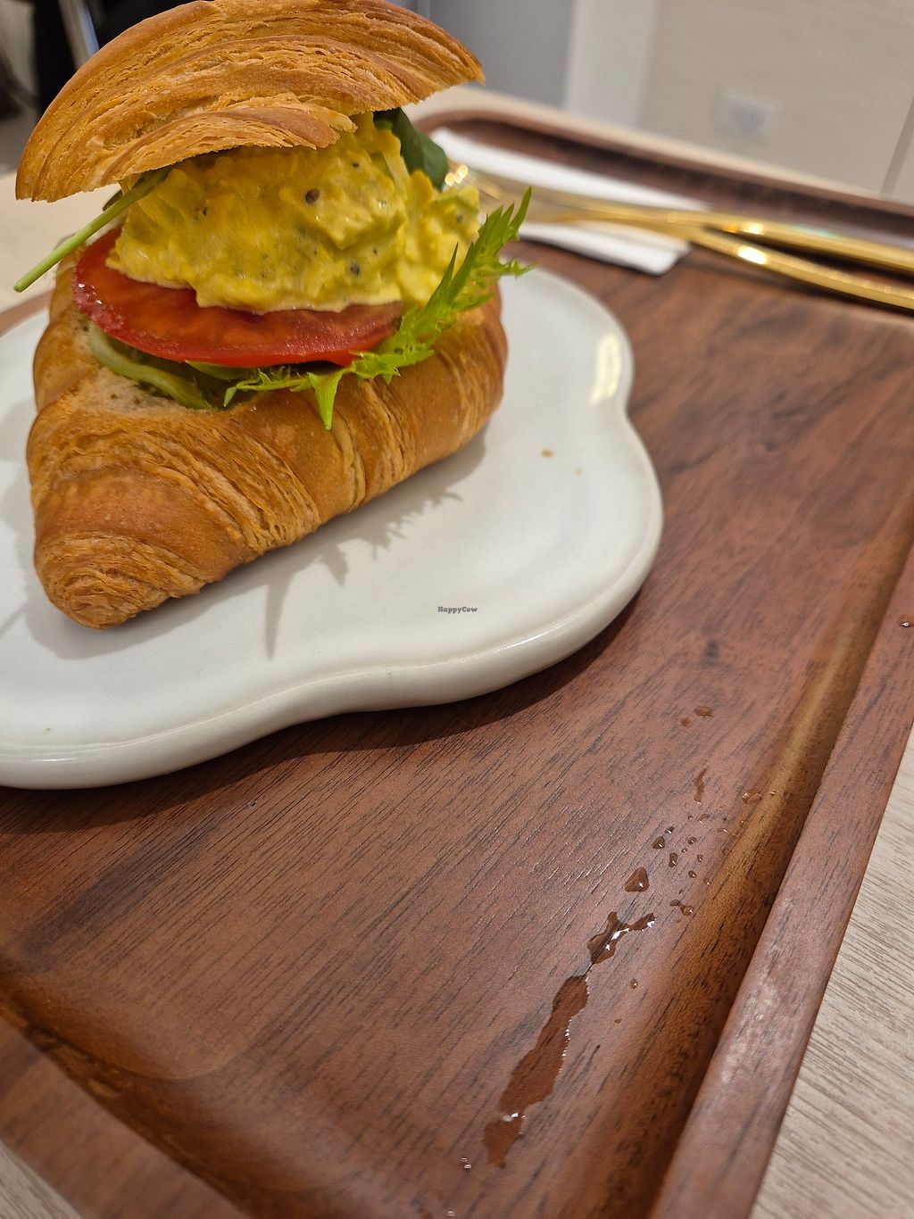 Egg salad croissant with matcha soy milk 🥐🍵