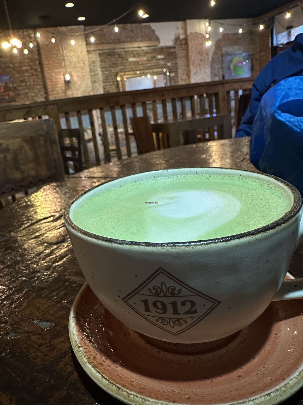 Got the matcha latte on a rainy Saturday morning, really hit the spot! Different plant milks to choose from, I got soy. Love the vibes here , sat in the cozy nook of books!