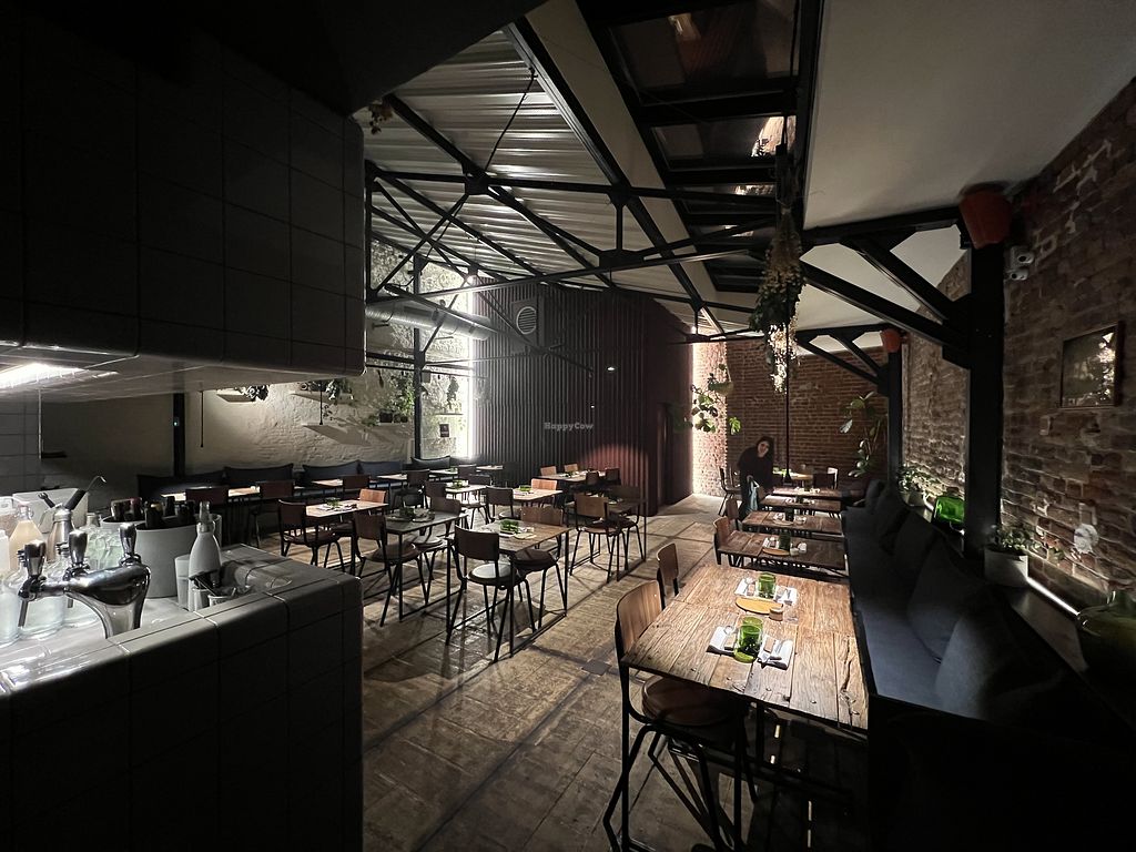 Serves meat, vegan options available. Gastronomic restaurant with one daily menu that can be made vegan on request. Open Tue-Sat 12:00-13:30, 19:00-21:30.